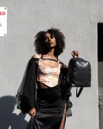 Dimensions: 10″ x 5″ x 11.5″ ? Two large main zippered compartments ? Side pockets ? Zippered Stash pocket ? Adjustable straps for custom sizing ? Gold zippers with metal hardware