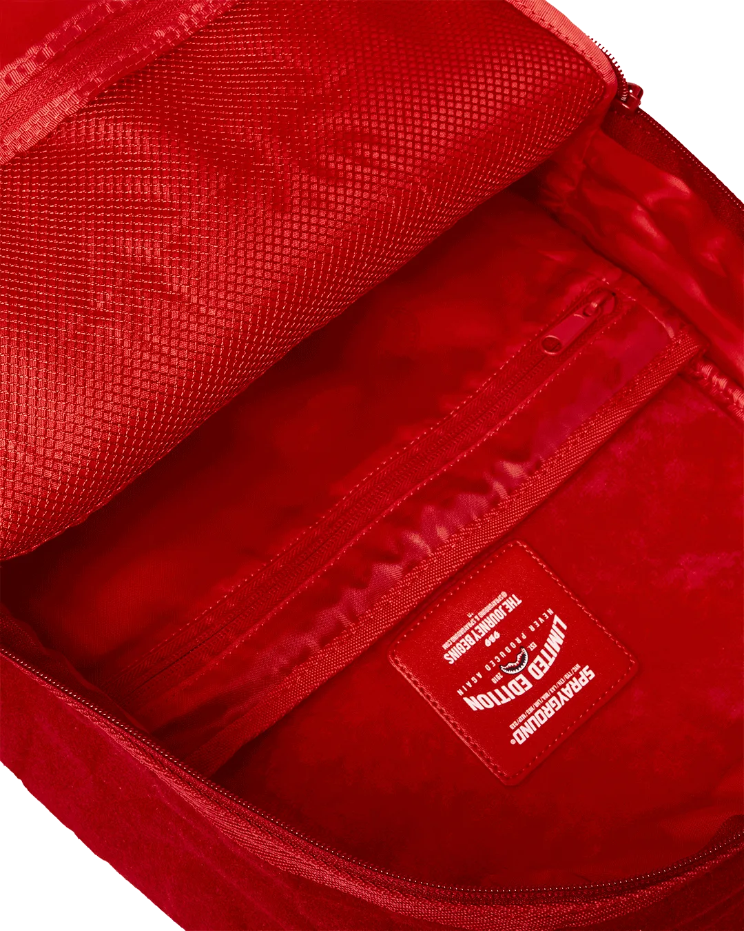 Dimensions: 18″ x 6″ x 11.5″ ? Front zipper pocket ? Side pockets ? Zippered Stash pocket ? Separate velour sunglass compartment ? Ergonomic mesh back padding ? Adjustable Straps for custom sizing ? Gold zippers with metal hardware ? Metal “Sprayground Authentic” badge ? Slide through back sleeve connects to carry-on luggage to free your hands