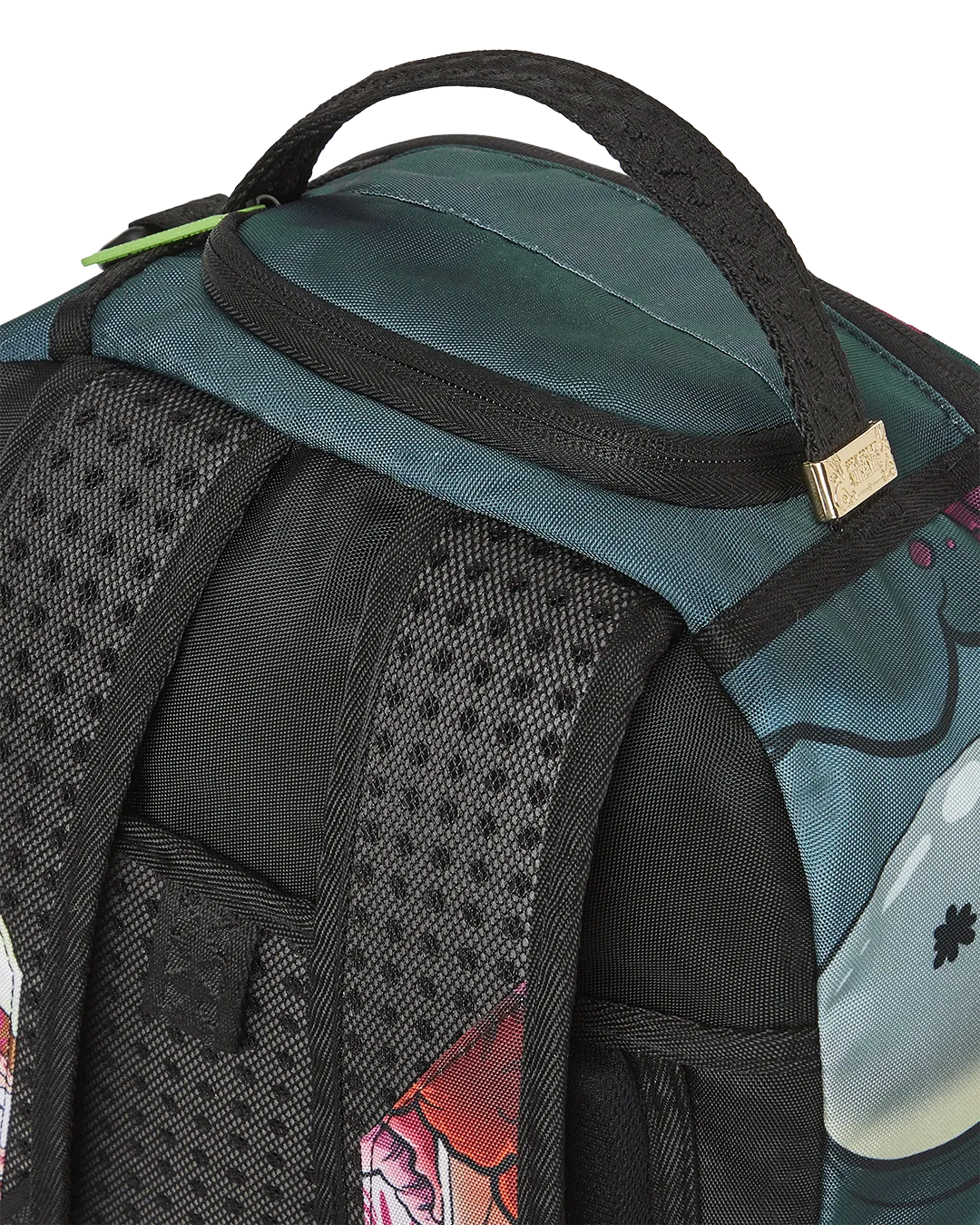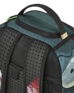 Dimensions: 18″ x 6″ x 11.5″ ? Front zipper pocket ? Side pockets ? Zippered Stash pocket ? Separate velour sunglass compartment ? Ergonomic mesh back padding ? Adjustable Straps for custom sizing ? Green zippers with metal hardware ? Metal “Sprayground Authentic” badge ? Slide through back sleeve connects to carry on luggage to free your hands