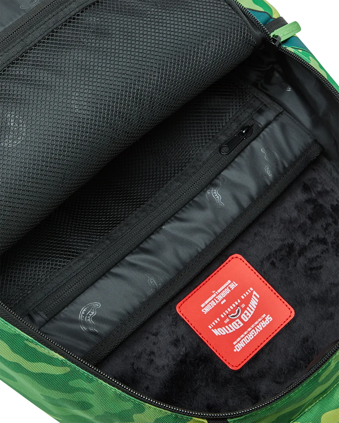 Dimensions: 18″ x 6″ x 11.5″ ? Front zipper pocket ? Side pockets ? Zippered Stash pocket ? Separate velour sunglass compartment ? Ergonomic mesh back padding ? Adjustable Straps for custom sizing ? Gold zippers with metal hardware ? Metal “Sprayground Authentic” badge ? Slide through back sleeve connects to carry-on luggage to free your hands