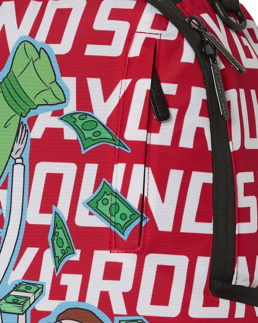 Dimensions: 18″ x 6″ x 11.5″ ? Front zipper pocket ? Side pockets ? Zippered Stash pocket ? Separate velour sunglass compartment ? Ergonomic mesh back padding ? Adjustable Straps for custom sizing ? Gold zippers with metal hardware ? Metal “Sprayground Authentic” badge ? Slide through back sleeve connects to carry-on luggage to free your hands