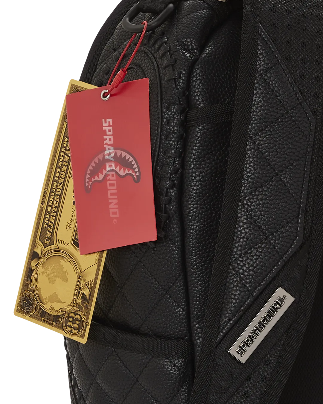 Dimensions: 18″ x 6″ x 11.5″ ? Front zipper pocket ? Side pockets ? Zippered Stash pocket ? Separate velour sunglass compartment ? Ergonomic mesh back padding ? Adjustable Straps for custom sizing ? Gold zippers with metal hardware ? Metal “Sprayground Authentic” badge ? Slide through back sleeve connects to carry-on luggage to free your hands