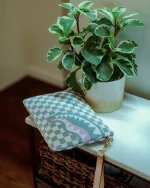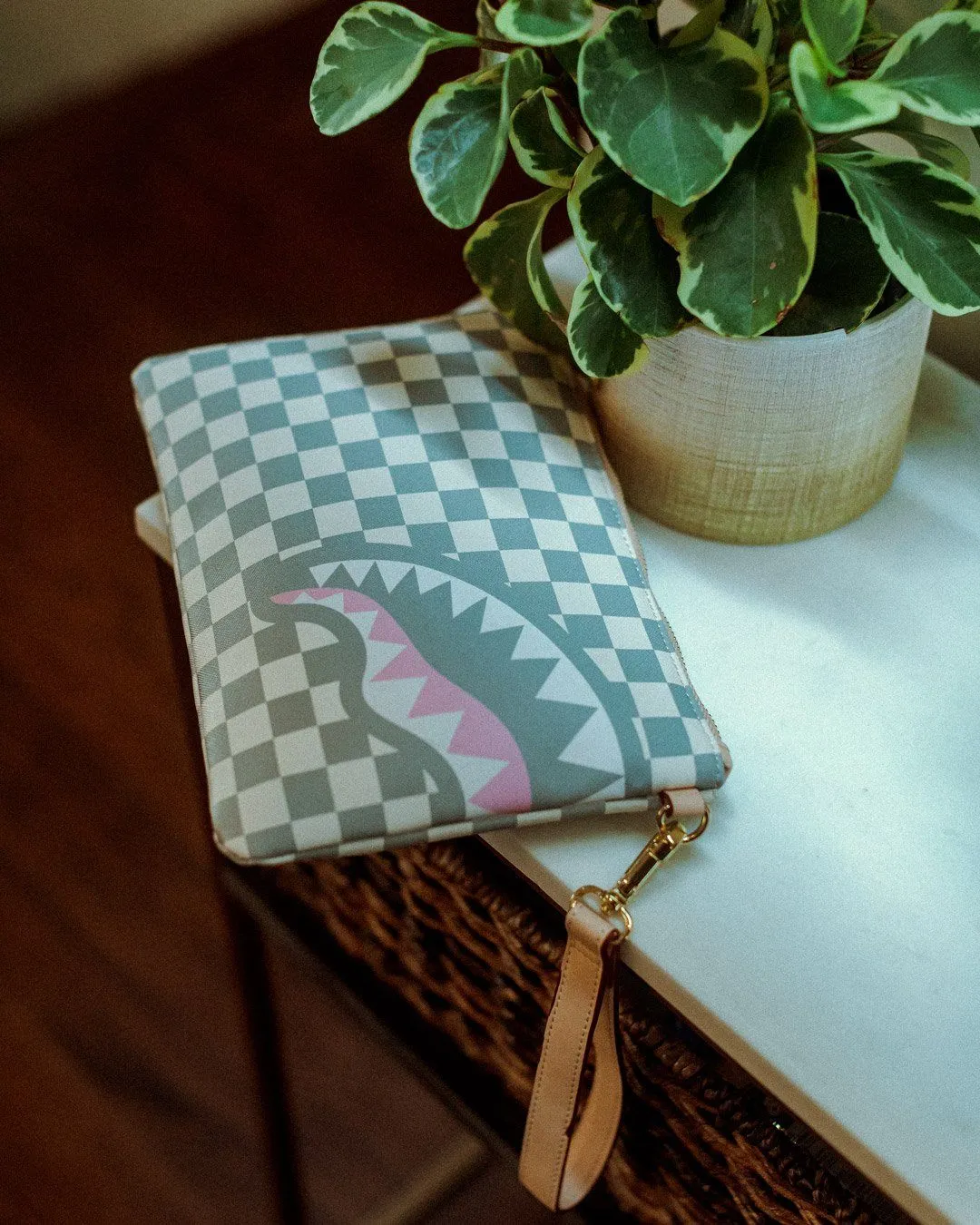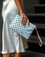 Pouch with removable wristlet strap, Handle on front panel, Zip Closure