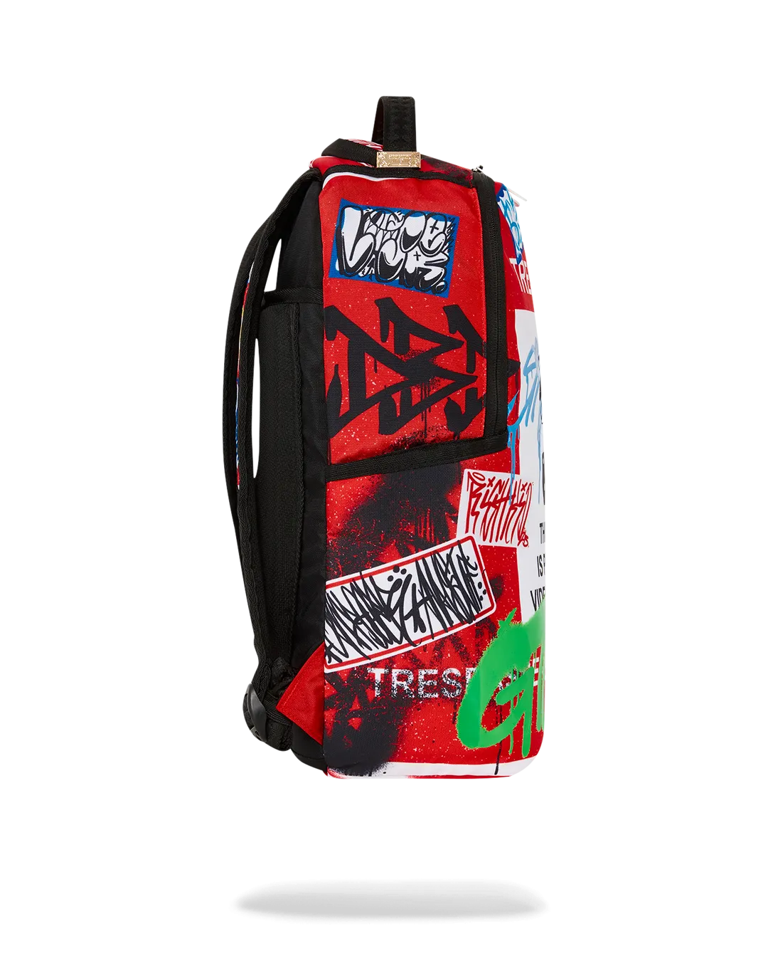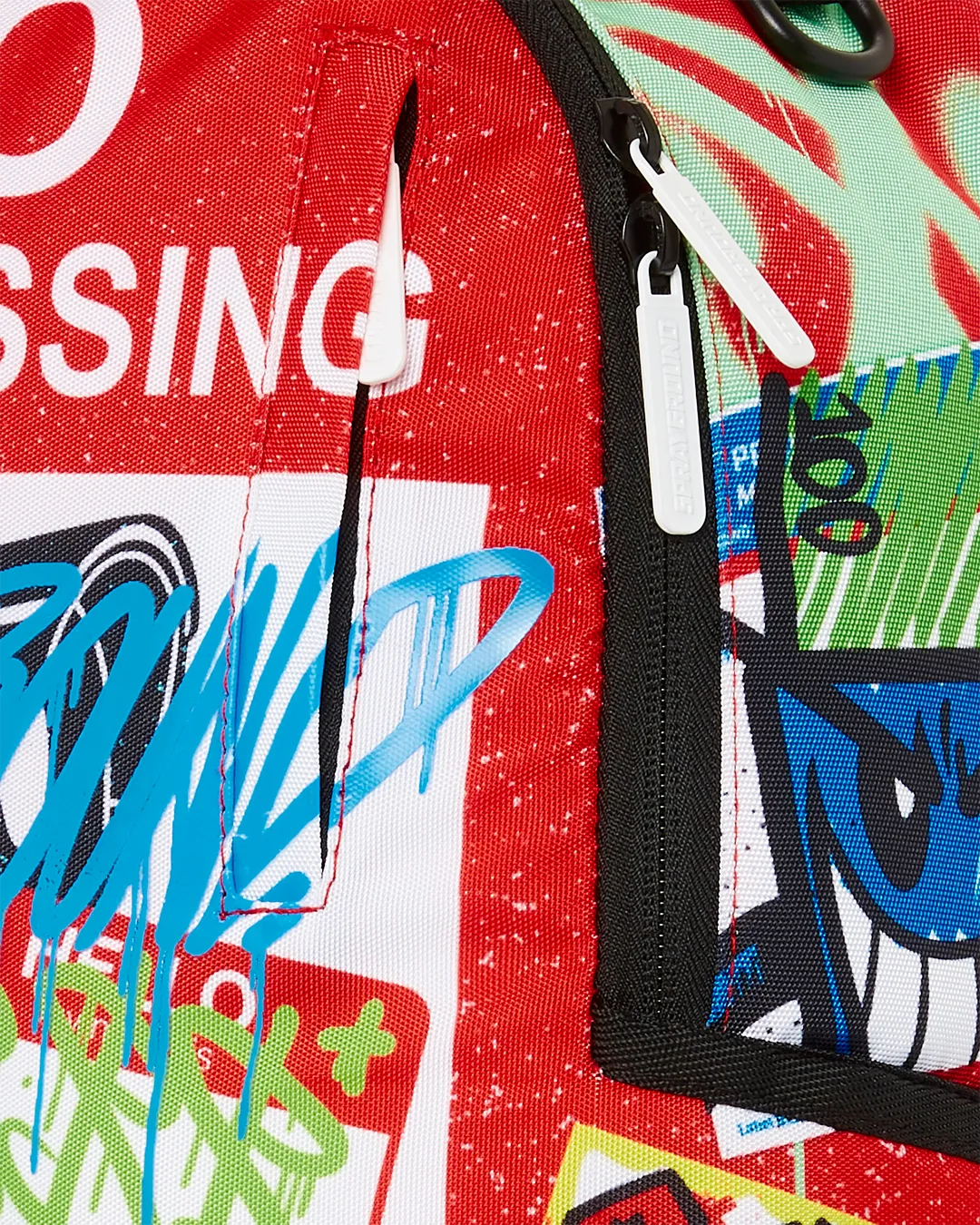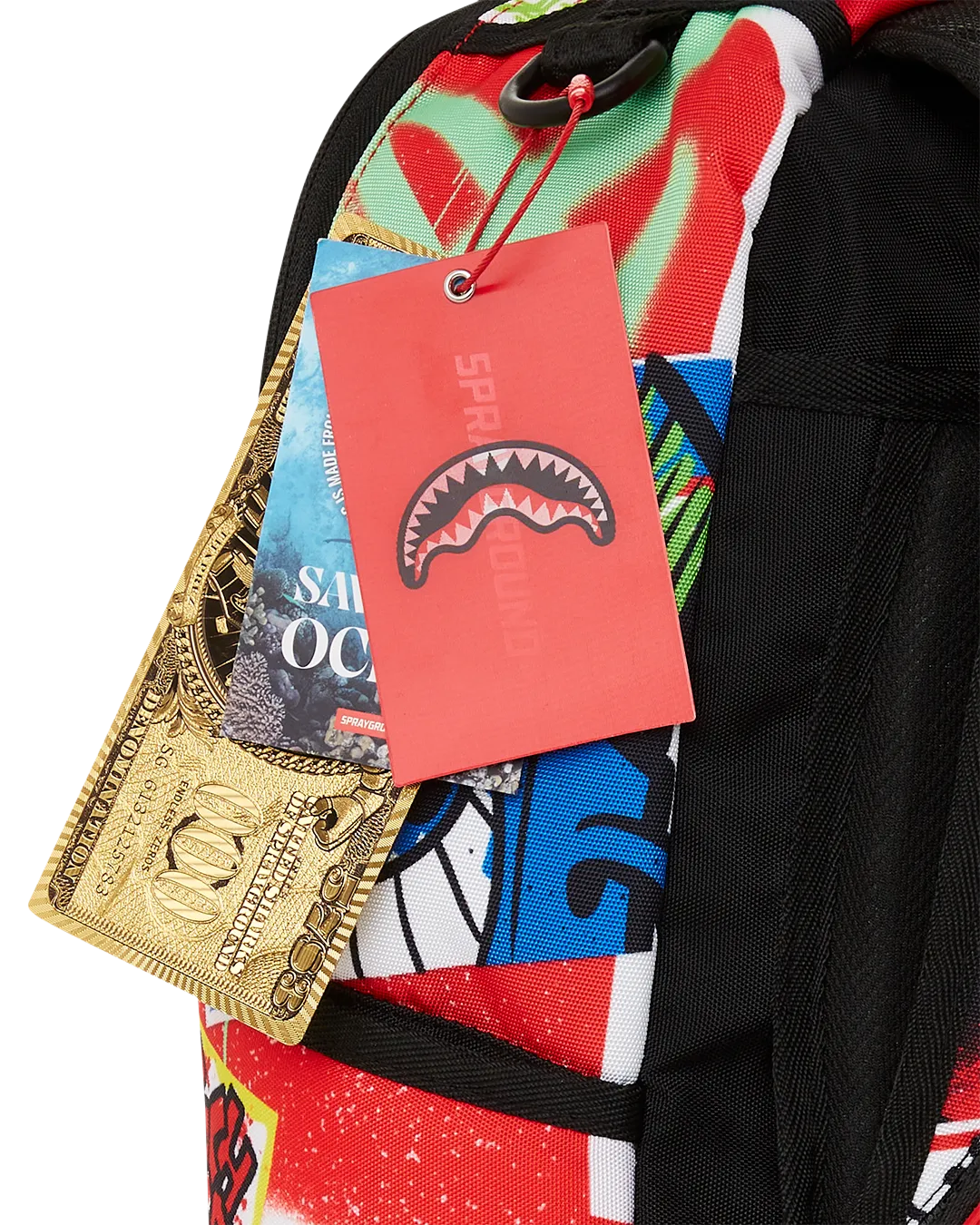 Dimensions: 18″ x 6″ x 11.5″ ? Front zipper pocket ? Side pockets ? Zippered Stash pocket ? Separate velour sunglass compartment ? Ergonomic mesh back padding ? Adjustable Straps for custom sizing ? Gold zippers with metal hardware ? Metal “Sprayground Authentic” badge ? Slide through back sleeve connects to carry-on luggage to free your hands