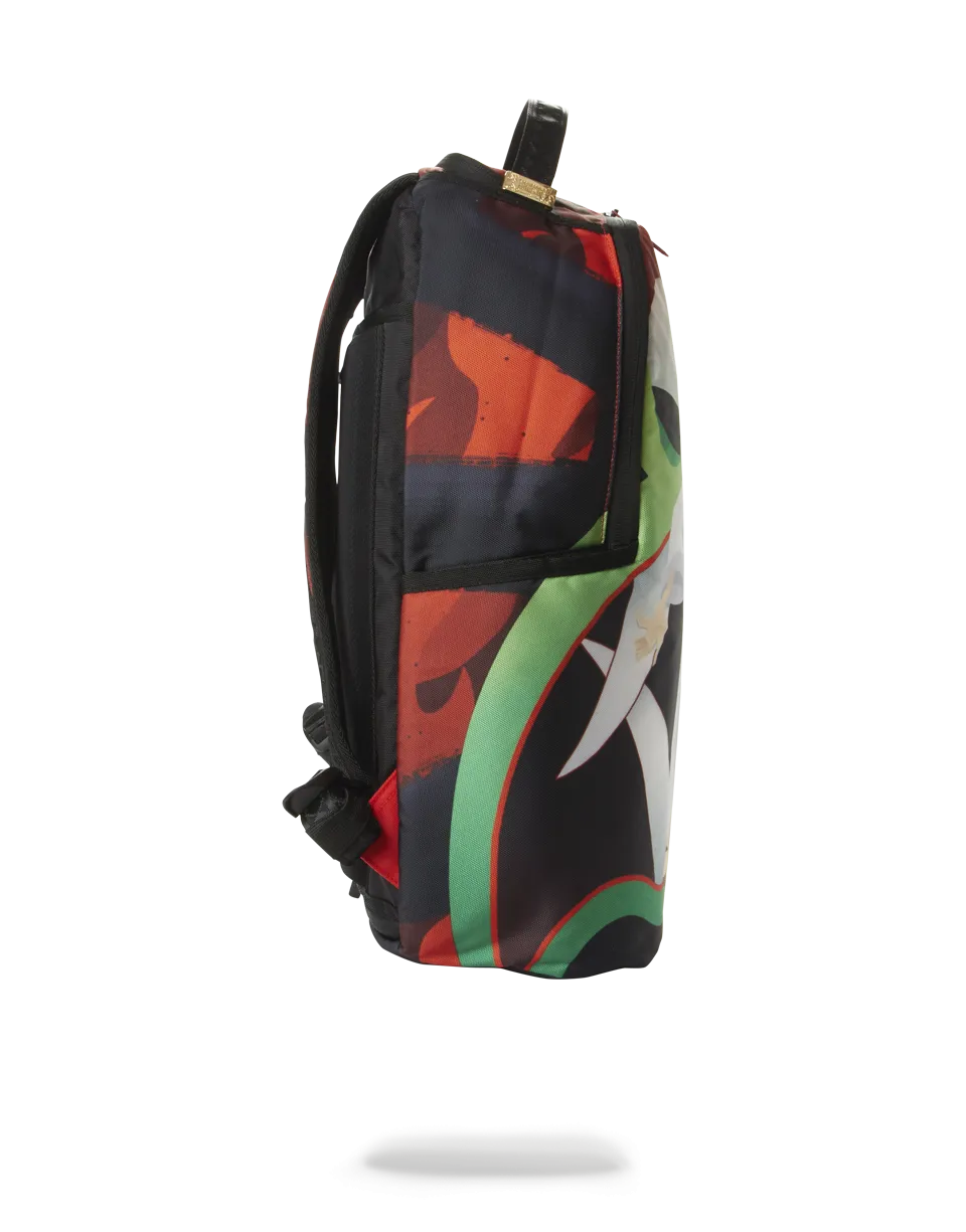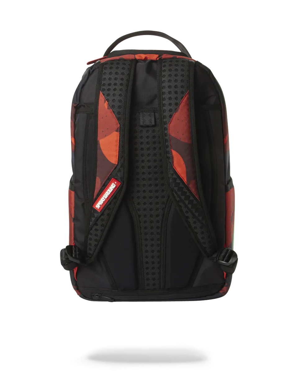 Dimensions: 18″ x 6″ x 11.5″ ? Front zipper pocket ? Side pockets ? Zippered Stash pocket ? Separate velour sunglass compartment ? Ergonomic mesh back padding ? Adjustable Straps for custom sizing ? Red zippers with metal hardware ? Metal “Sprayground Authentic” badge ? Slide through back sleeve connects to carry-on luggage to free your hands
