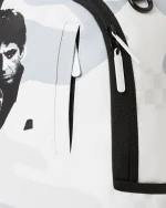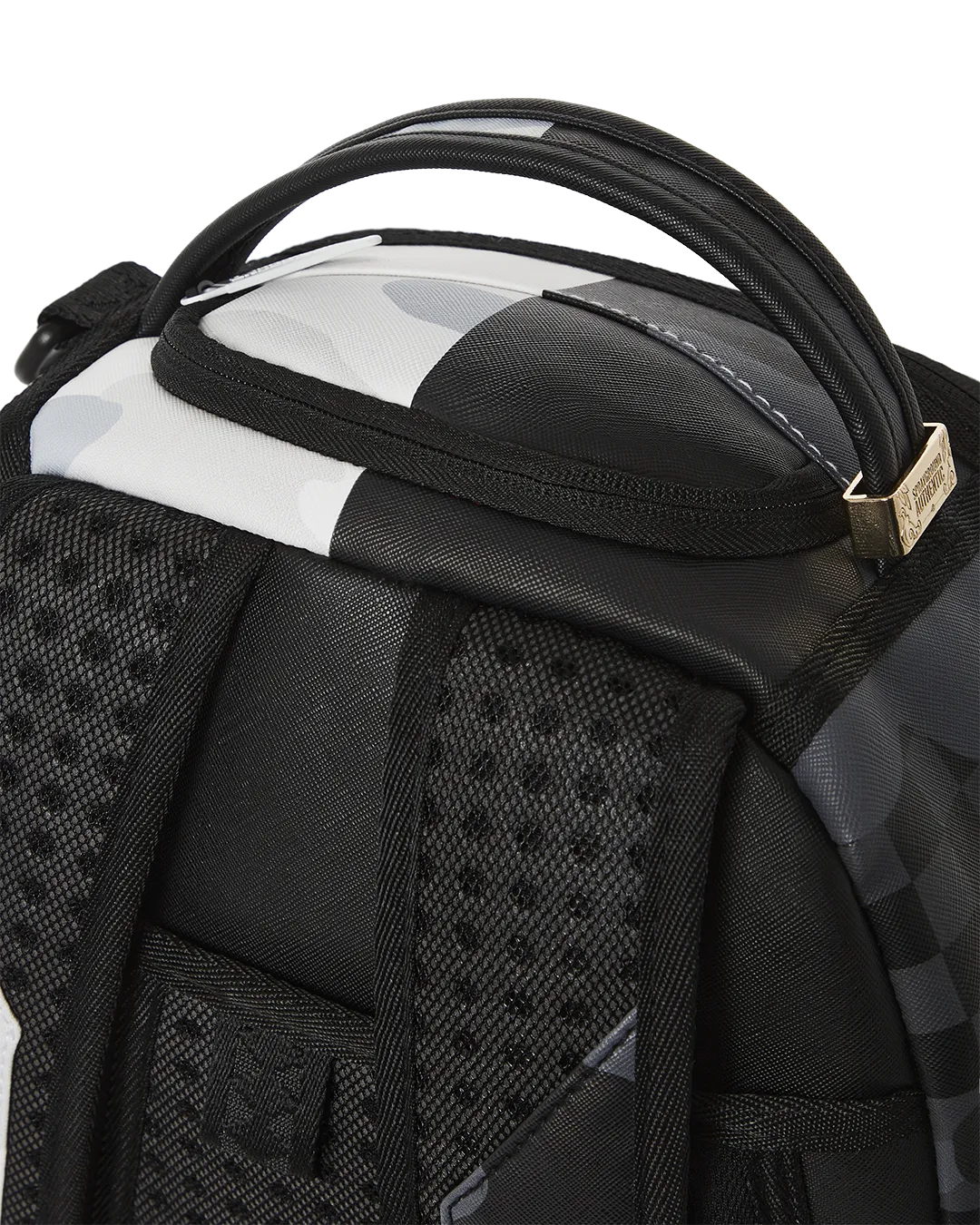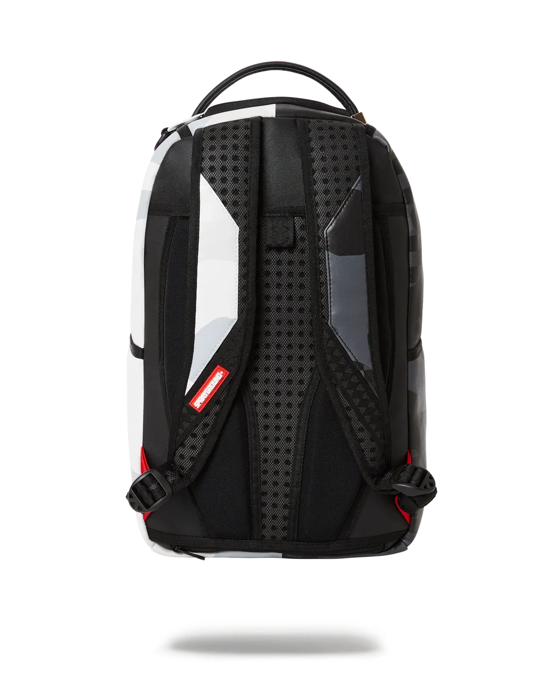 Dimensions: 18″ x 6″ x 11.5″ ? Front zipper pocket ? Side pockets ? Zippered Stash pocket ? Separate velour sunglass compartment ? Ergonomic mesh back padding ? Adjustable Straps for custom sizing ? Gold zippers with metal hardware ? Metal “Sprayground Authentic” badge ? Slide through back sleeve connects to carry-on luggage to free your hands