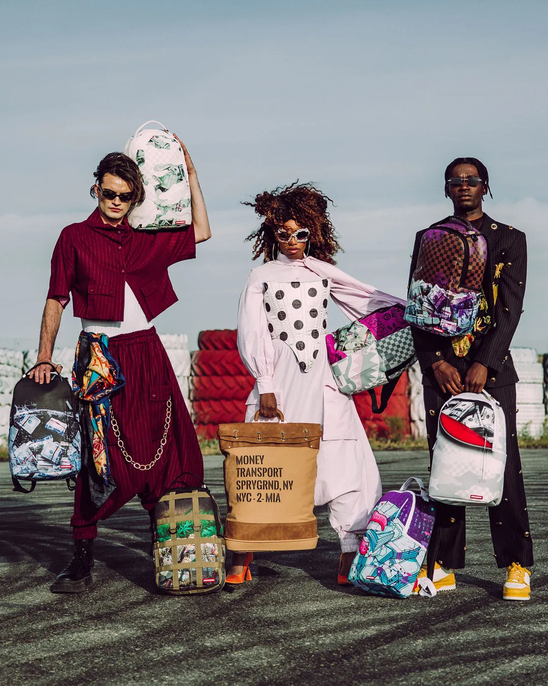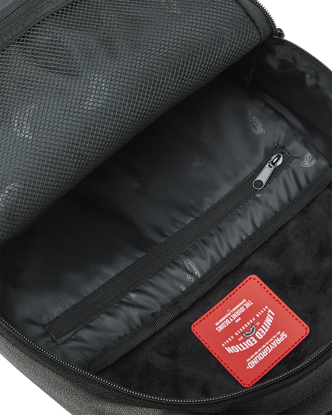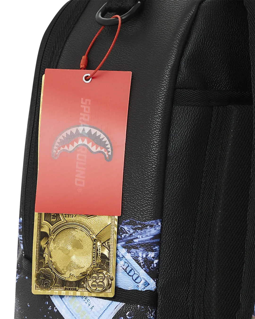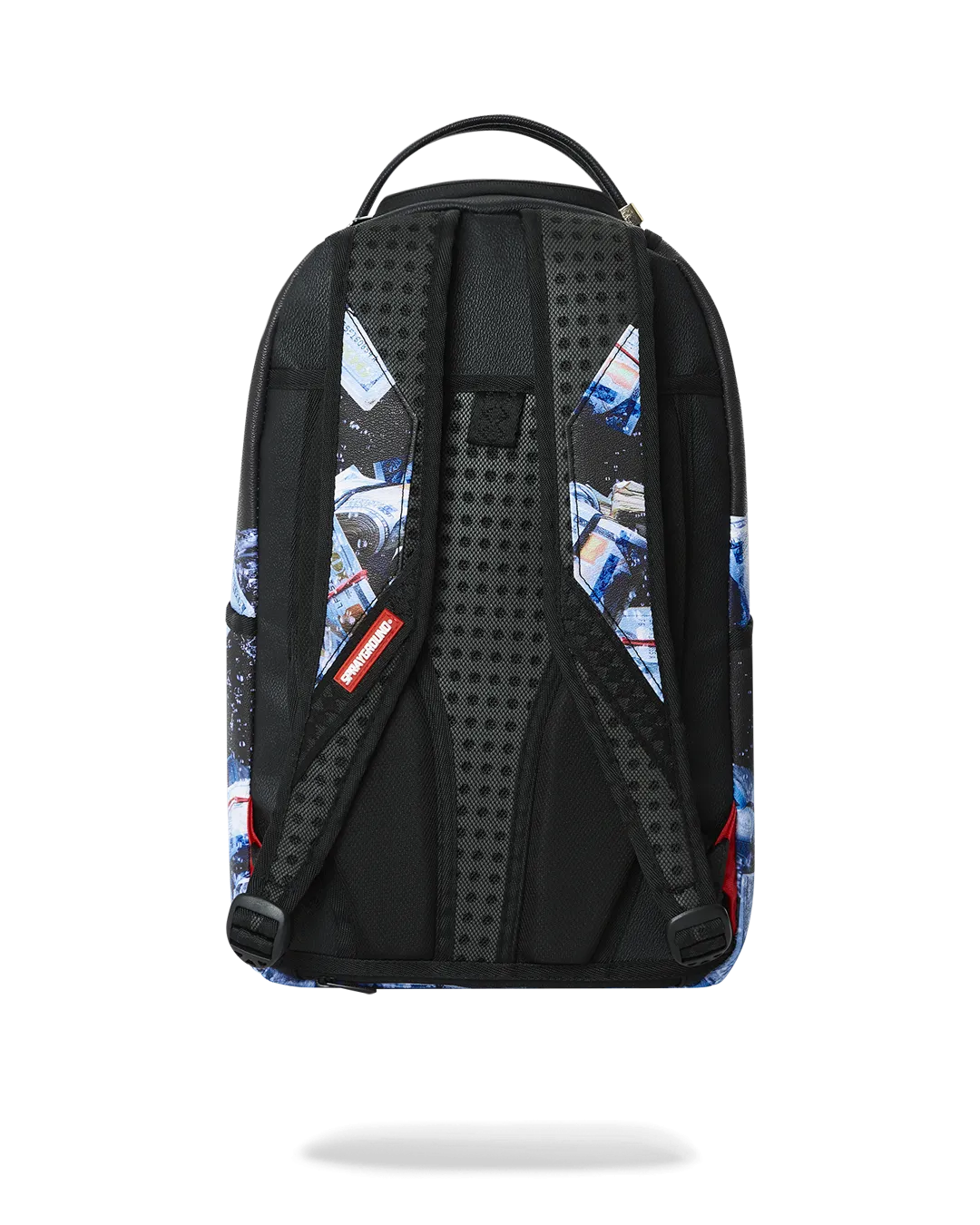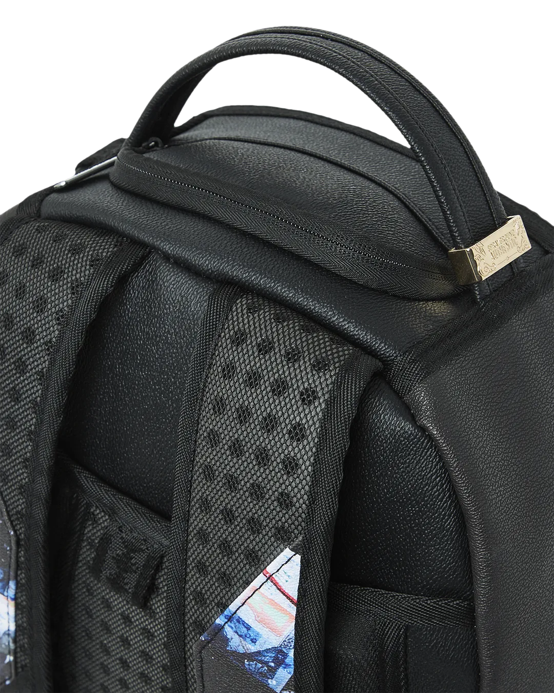 Dimensions: 18″ x 6″ x 11.5″ ? Front zipper pocket ? Side pockets ? Zippered Stash pocket ? Separate velour sunglass compartment ? Ergonomic mesh back padding ? Adjustable Straps for custom sizing ? Gold zippers with metal hardware ? Metal “Sprayground Authentic” badge ? Slide through back sleeve connects to carry-on luggage to free your hands