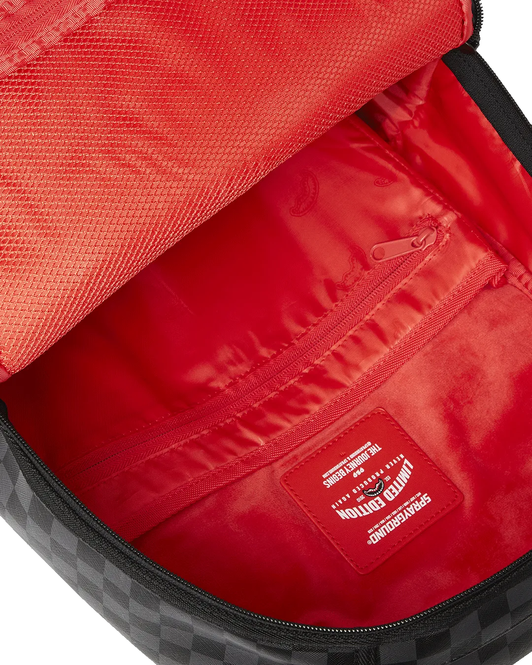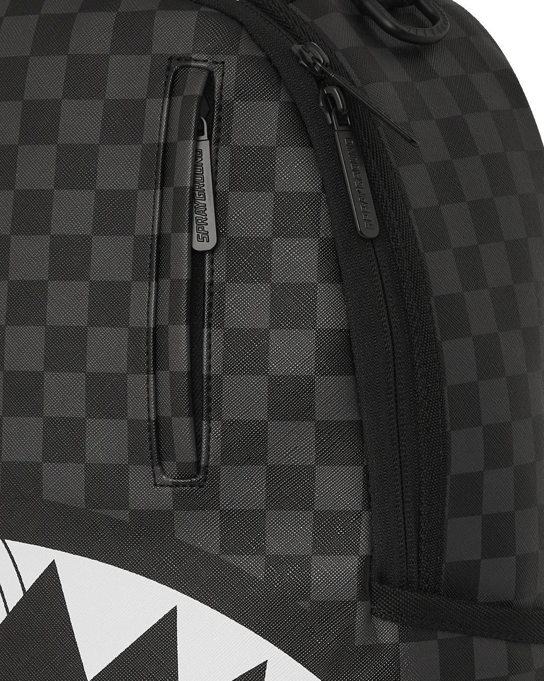 Dimensions: 18″ x 6″ x 11.5″ ? Front zipper pocket ? Side pockets ? Zippered Stash pocket ? Separate velour sunglass compartment ? Ergonomic mesh back padding ? Adjustable Straps for custom sizing ? Gold zippers with metal hardware ? Metal “Sprayground Authentic” badge ? Slide through back sleeve connects to carry-on luggage to free your hands