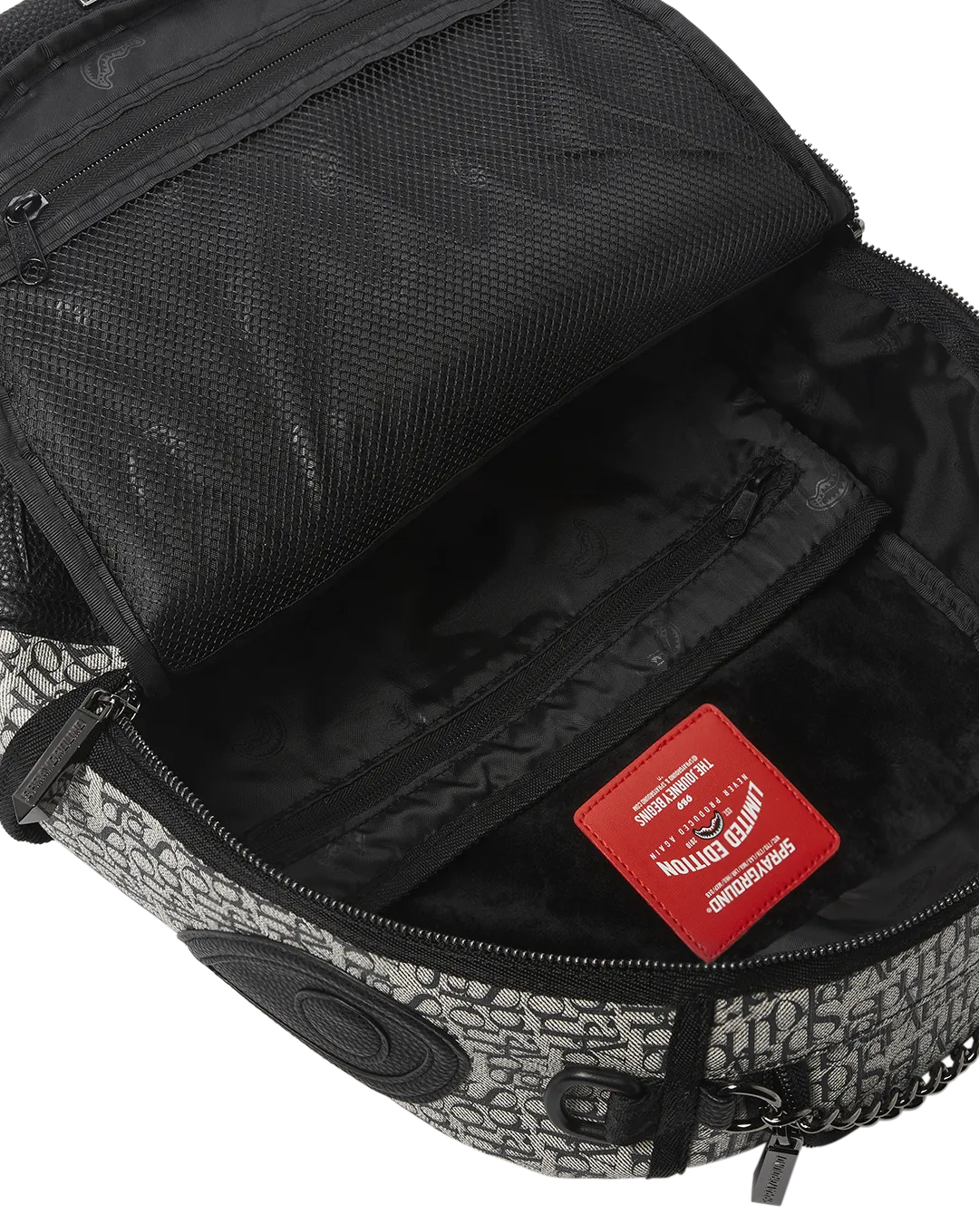 Dimensions: 18″ x 6″ x 11.5″ ? Front zipper pocket ? Side pockets ? Zippered Stash pocket ? Separate velour sunglass compartment ? Ergonomic mesh back padding ? Adjustable Straps for custom sizing ? Gold zippers with metal hardware ? Metal “Sprayground Authentic” badge ? Slide through back sleeve connects to carry-on luggage to free your hands