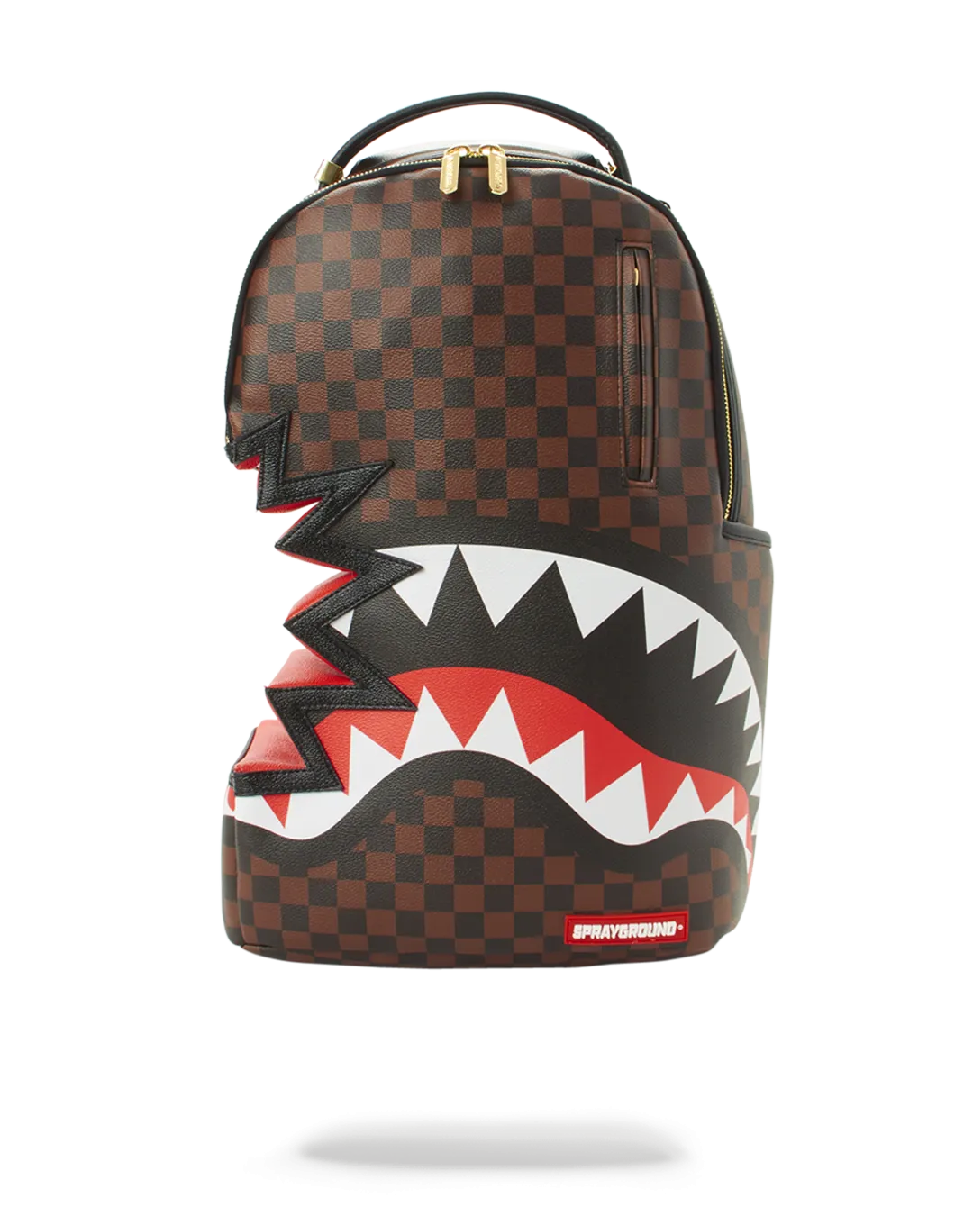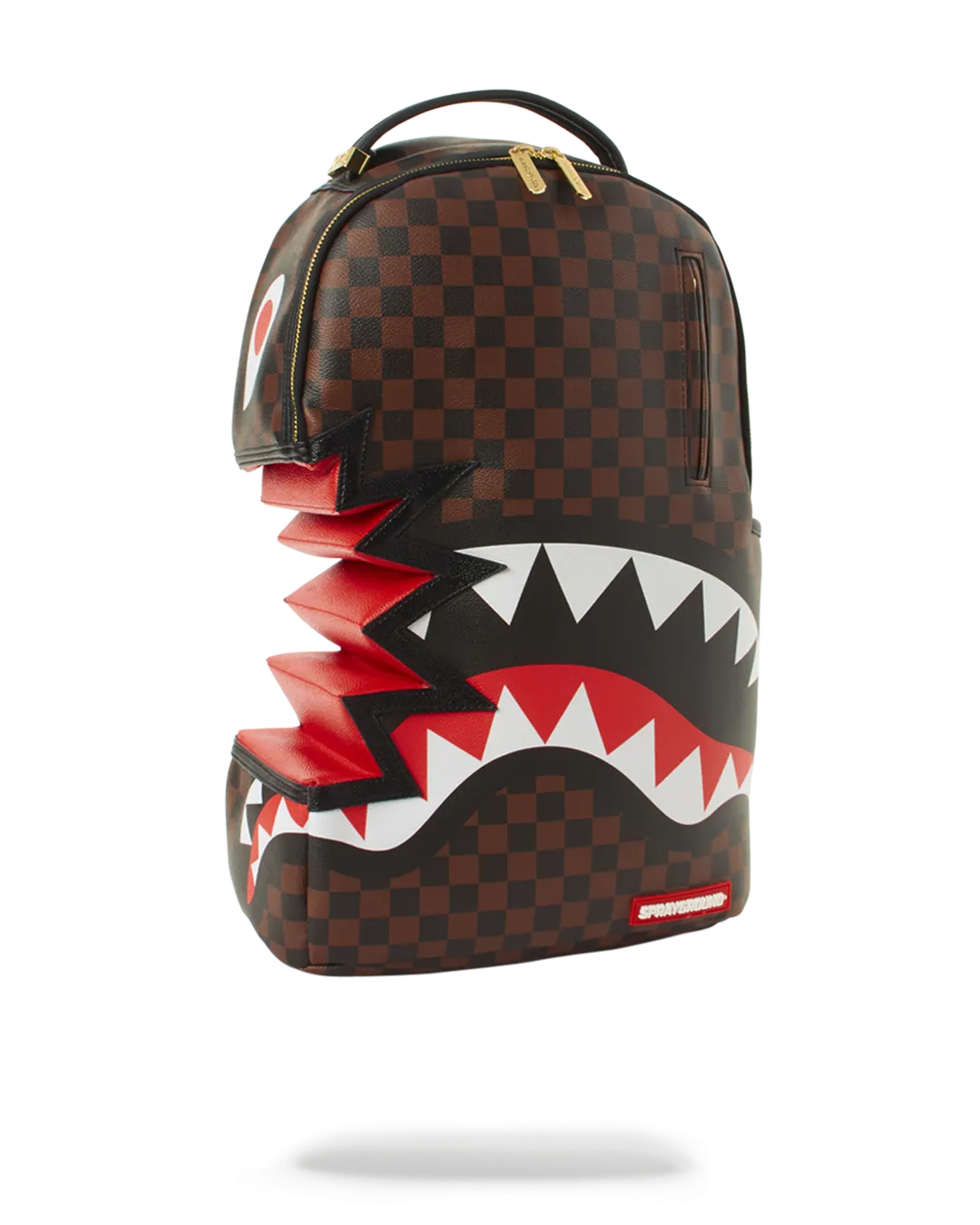 Highly Detailed Constructed Shark Bite. Bag Dimensions: 18″ x 6″ x 11.5″ ? Front zipper pocket ? Side pockets ? Separate velour sunglass compartment ? Ergonomic mesh back padding ? Adjustable Straps for custom sizing ? gold metal?zippers with metal hardware ? Metal “Sprayground Authentic” badge ? Slide through back sleeve connects to carry-on luggage to free your hands?? Stash Pocket (if u can find it)!