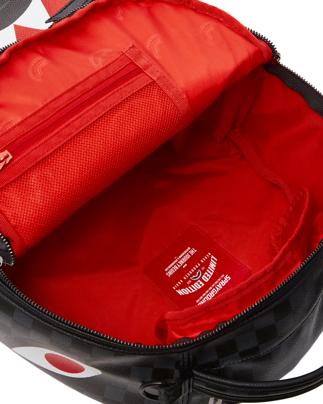 Dimensions: 18″ x 6″ x 11.5″ ? Front zipper pocket ? Side pockets ? Zippered Stash pocket ? Separate velour sunglass compartment ? Ergonomic mesh back padding ? Adjustable Straps for custom sizing ? Gold zippers with metal hardware ? Metal “Sprayground Authentic” badge ? Slide through back sleeve connects to carry-on luggage to free your hands