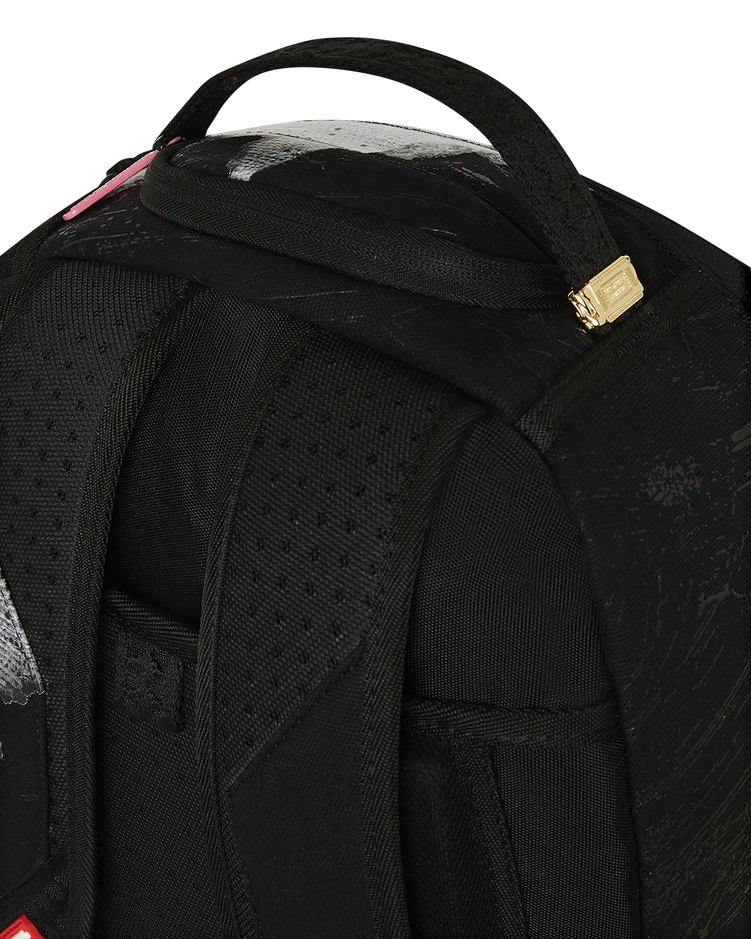 Dimensions: 18″ x 6″ x 11.5″ ? Front zipper pocket ? Side pockets ? Zippered Stash pocket ? Separate velour sunglass compartment ? Ergonomic mesh back padding ? Adjustable Straps for custom sizing ? Gold zippers with metal hardware ? Metal “Sprayground Authentic” badge ? Slide through back sleeve connects to carry-on luggage to free your hands