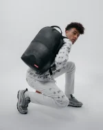 Dimensions: 18″ x 6″ x 11.5″ ? Front zipper pocket ? Side pockets ? Zippered Stash pocket ? Separate velour sunglass compartment ? Ergonomic mesh back padding ? Adjustable Straps for custom sizing ? Gold zippers with metal hardware ? Metal “Sprayground Authentic” badge ? Slide through back sleeve connects to carry-on luggage to free your hands