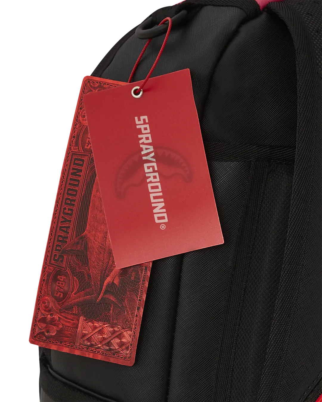 Dimensions: 18″ x 6″ x 11.5″ ? Front zipper pocket ? Side pockets ? Zippered Stash pocket ? Separate velour sunglass compartment ? Ergonomic mesh back padding ? Adjustable Straps for custom sizing ? Gold zippers with metal hardware ? Metal “Sprayground Authentic” badge ? Slide through back sleeve connects to carry-on luggage to free your hands