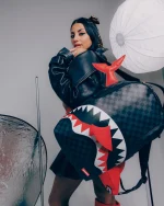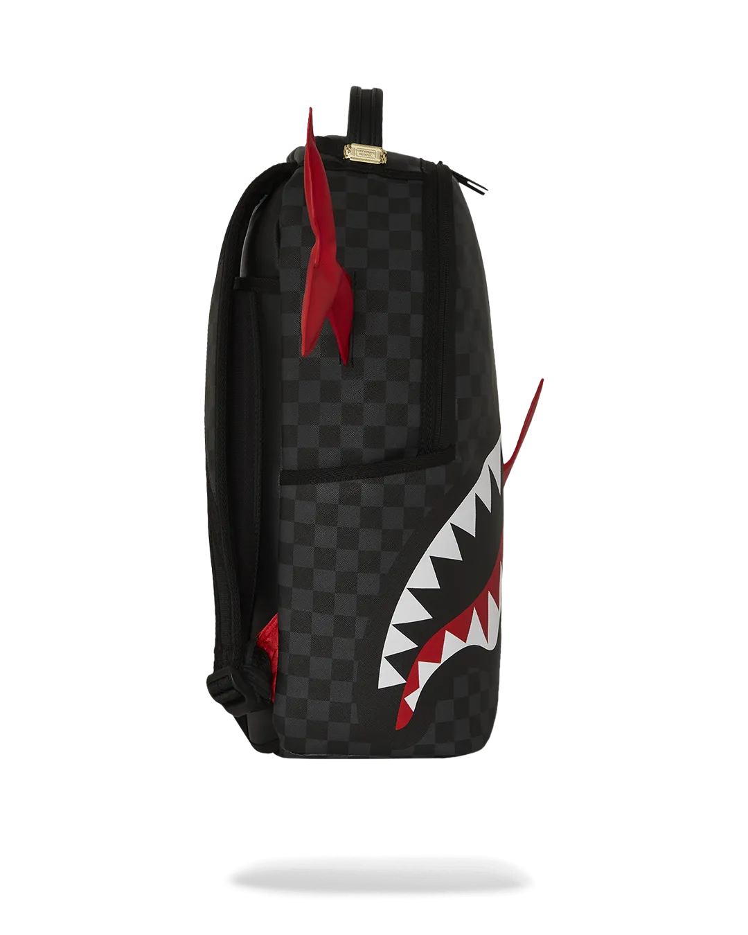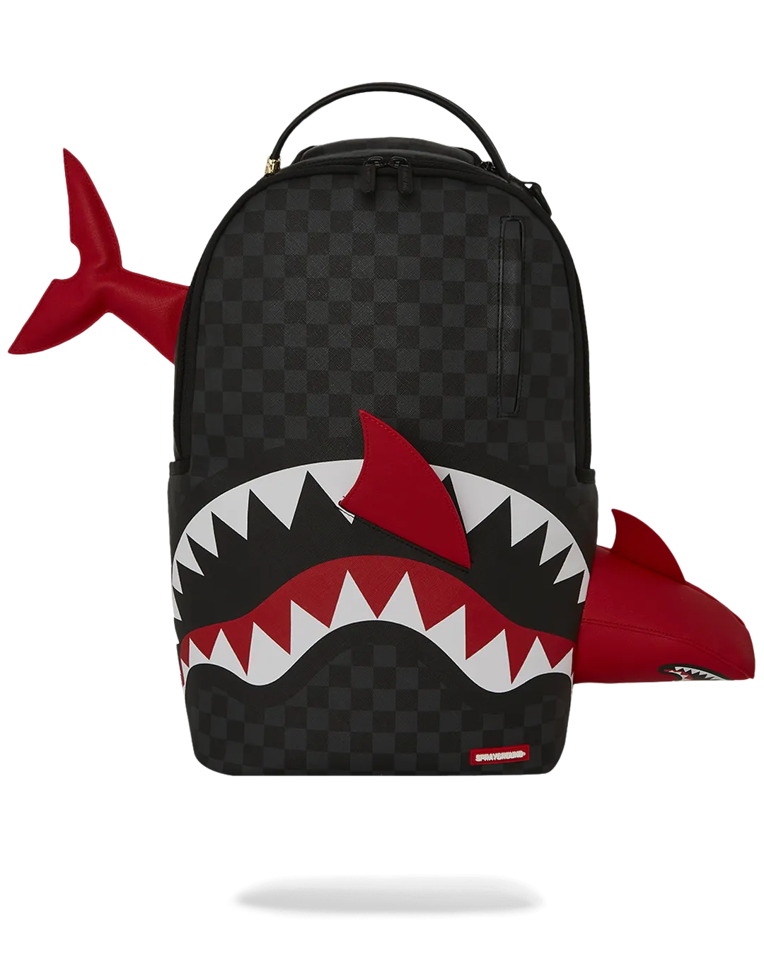 A Vivid Red Shark bursts dynamically from the side of this backpack, crafted in durable, molded 3D plastic that pops with fierce energy. The backpack??s base material is rugged, water-resistant nylon with a smooth finish, providing contrast to the shark??s bold, sculptural texture