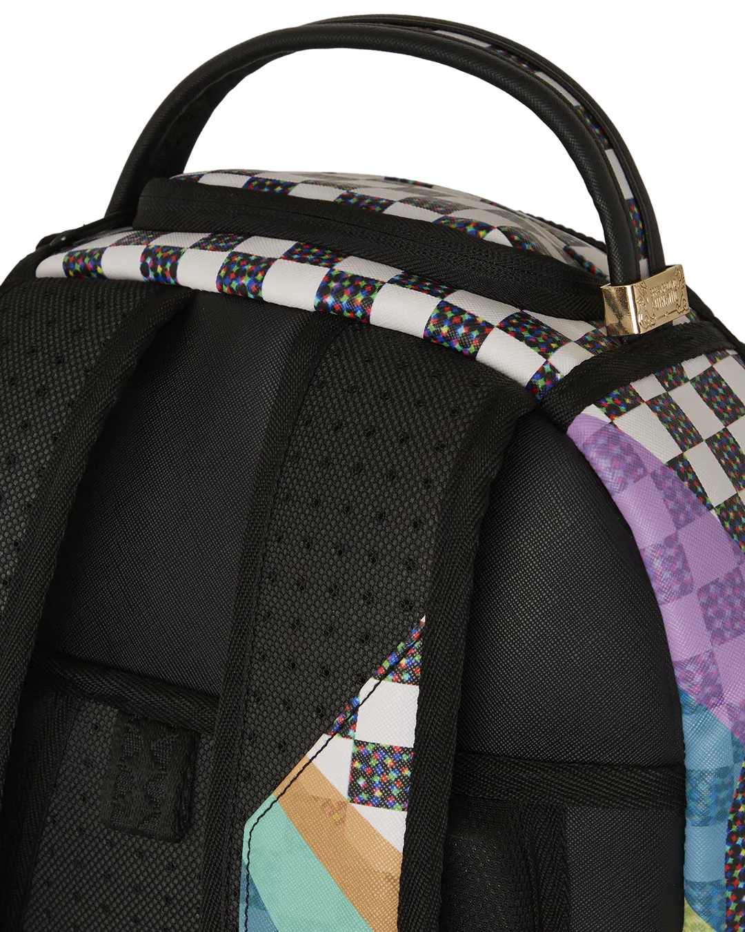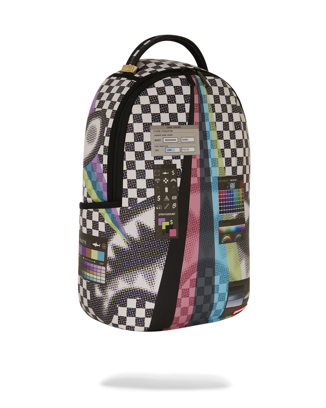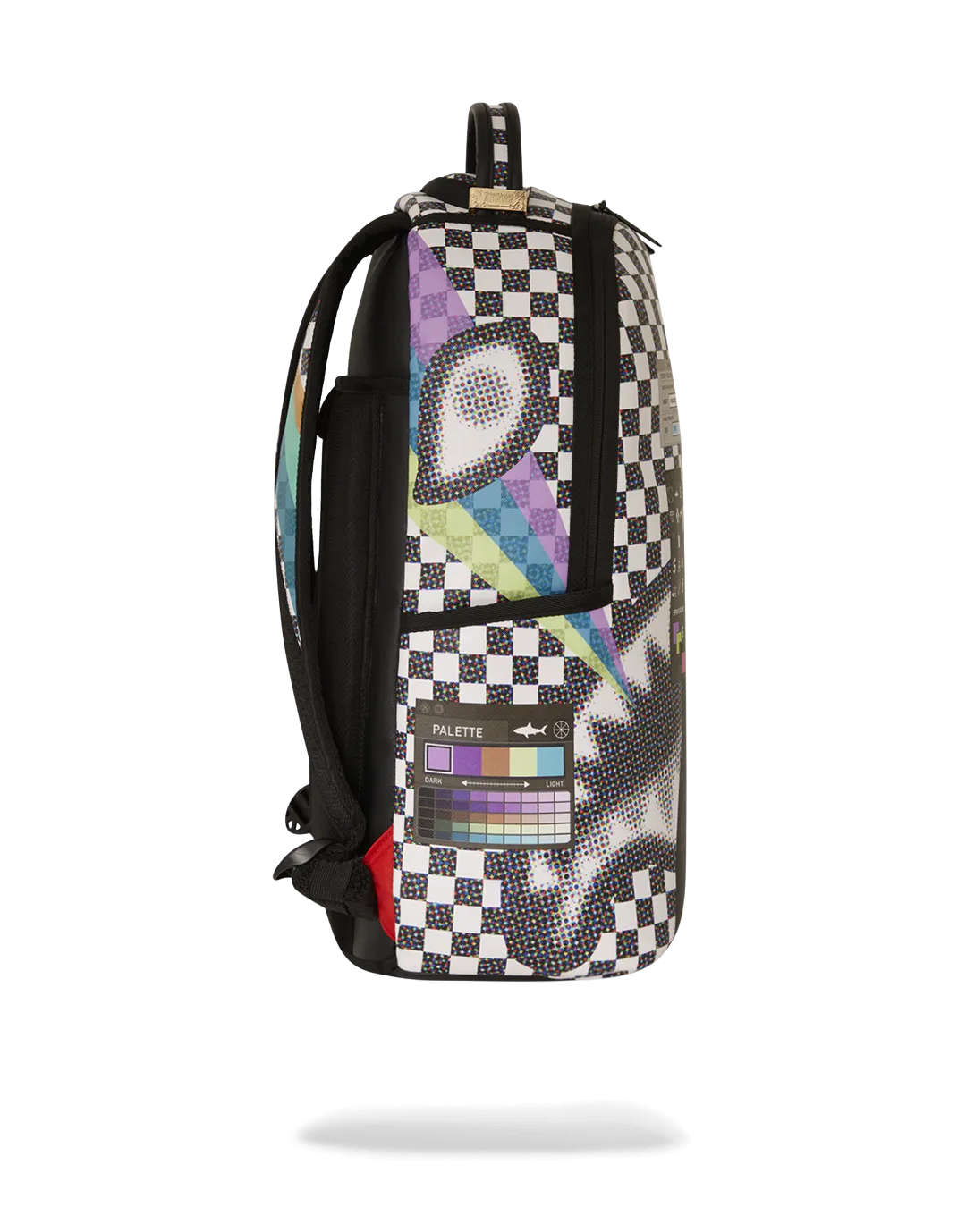Dimensions: 18″ x 6″ x 11.5″ ? Front zipper pocket ? Side pockets ? Zippered Stash pocket ? Separate velour sunglass compartment ? Ergonomic mesh back padding ? Adjustable Straps for custom sizing ? Gold zippers with metal hardware ? Metal “Sprayground Authentic” badge ? Slide through back sleeve connects to carry-on luggage to free your hands