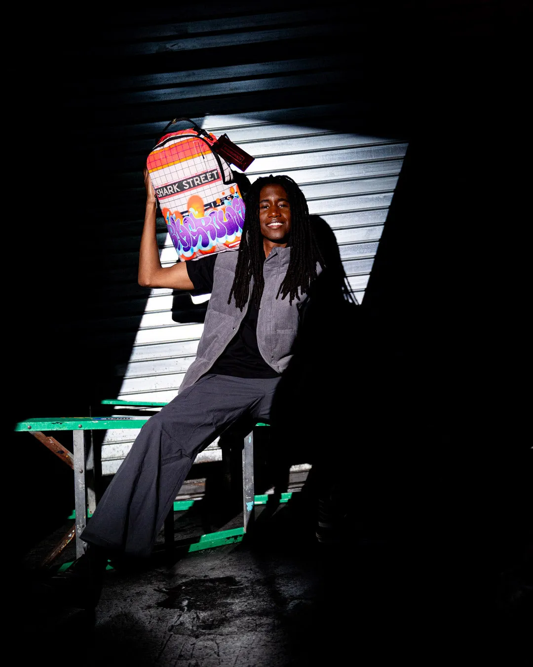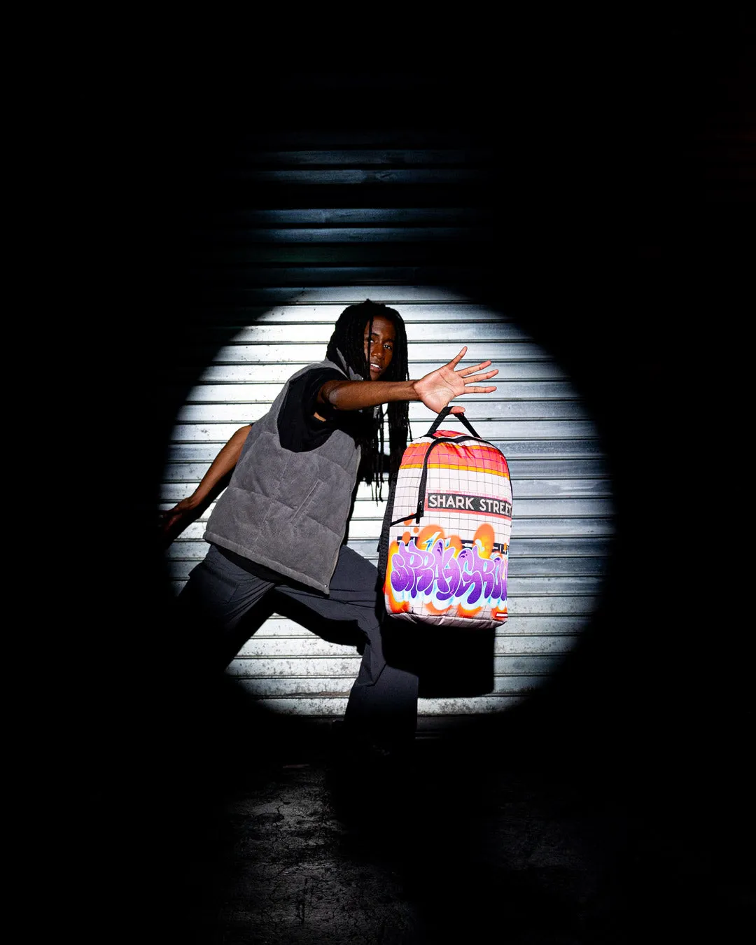 Dimensions: 18″ x 6″ x 11.5″ ? Front zipper pocket ? Side pockets ? Zippered Stash pocket ? Separate velour sunglass compartment ? Ergonomic mesh back padding ? Adjustable Straps for custom sizing ? Gold zippers with metal hardware ? Metal “Sprayground Authentic” badge ? Slide through back sleeve connects to carry-on luggage to free your hands