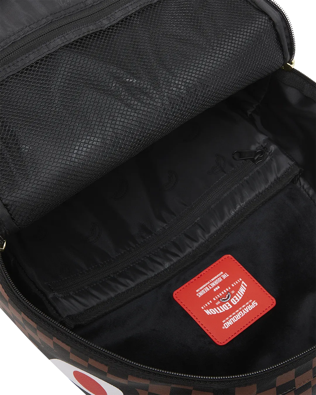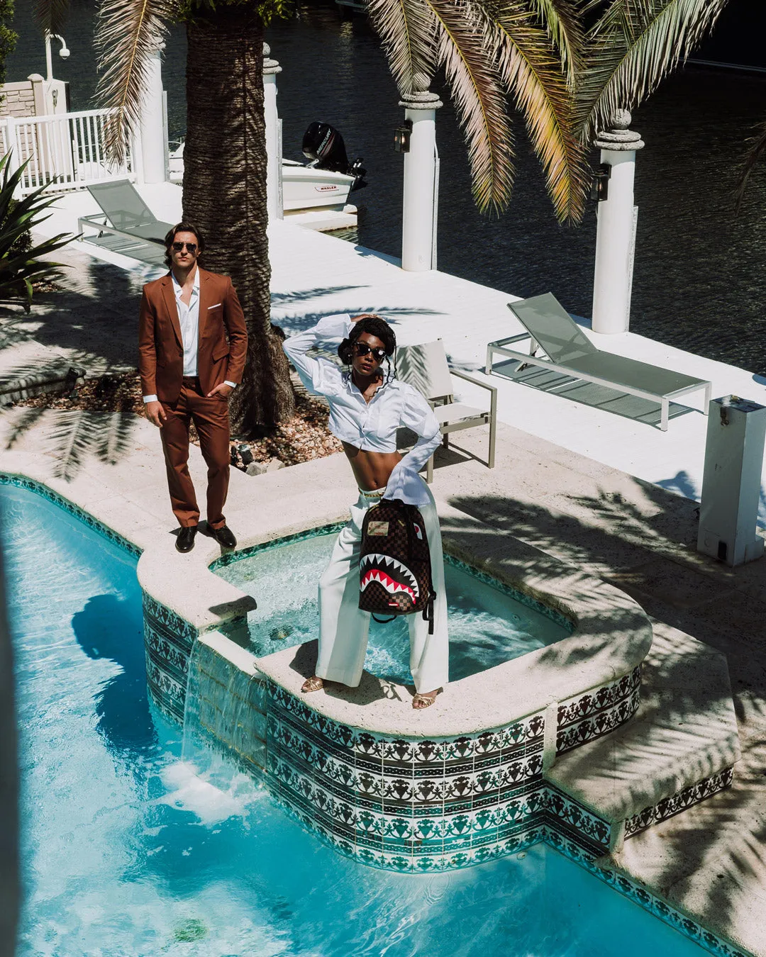 Dimensions: 18″ x 6″ x 11.5″ ? Front zipper pocket ? Side pockets ? Zippered Stash pocket ? Separate velour sunglass compartment ? Ergonomic mesh back padding ? Adjustable Straps for custom sizing ? Gold zippers with metal hardware ? Metal “Sprayground Authentic” badge ? Slide through back sleeve connects to carry-on luggage to free your hands