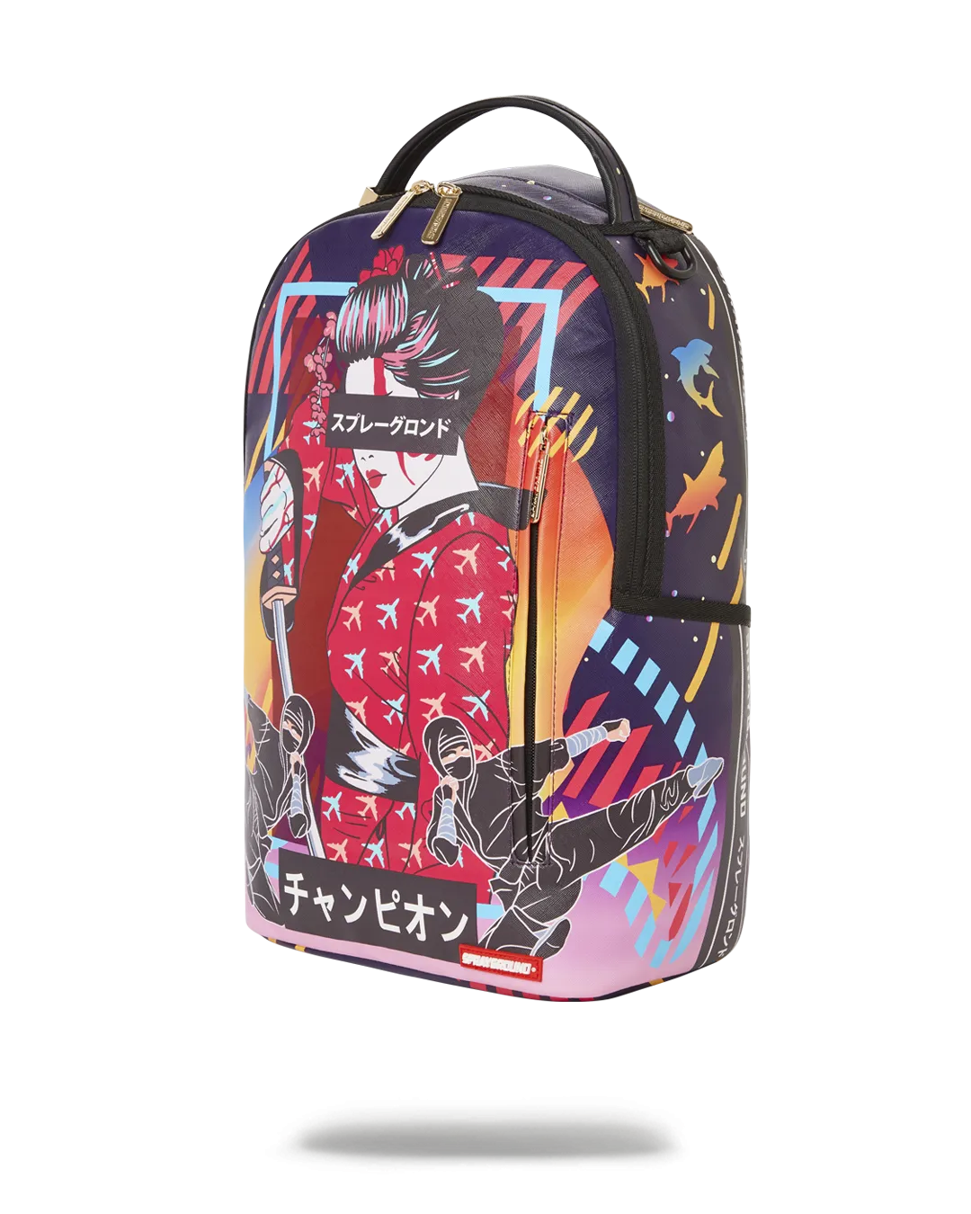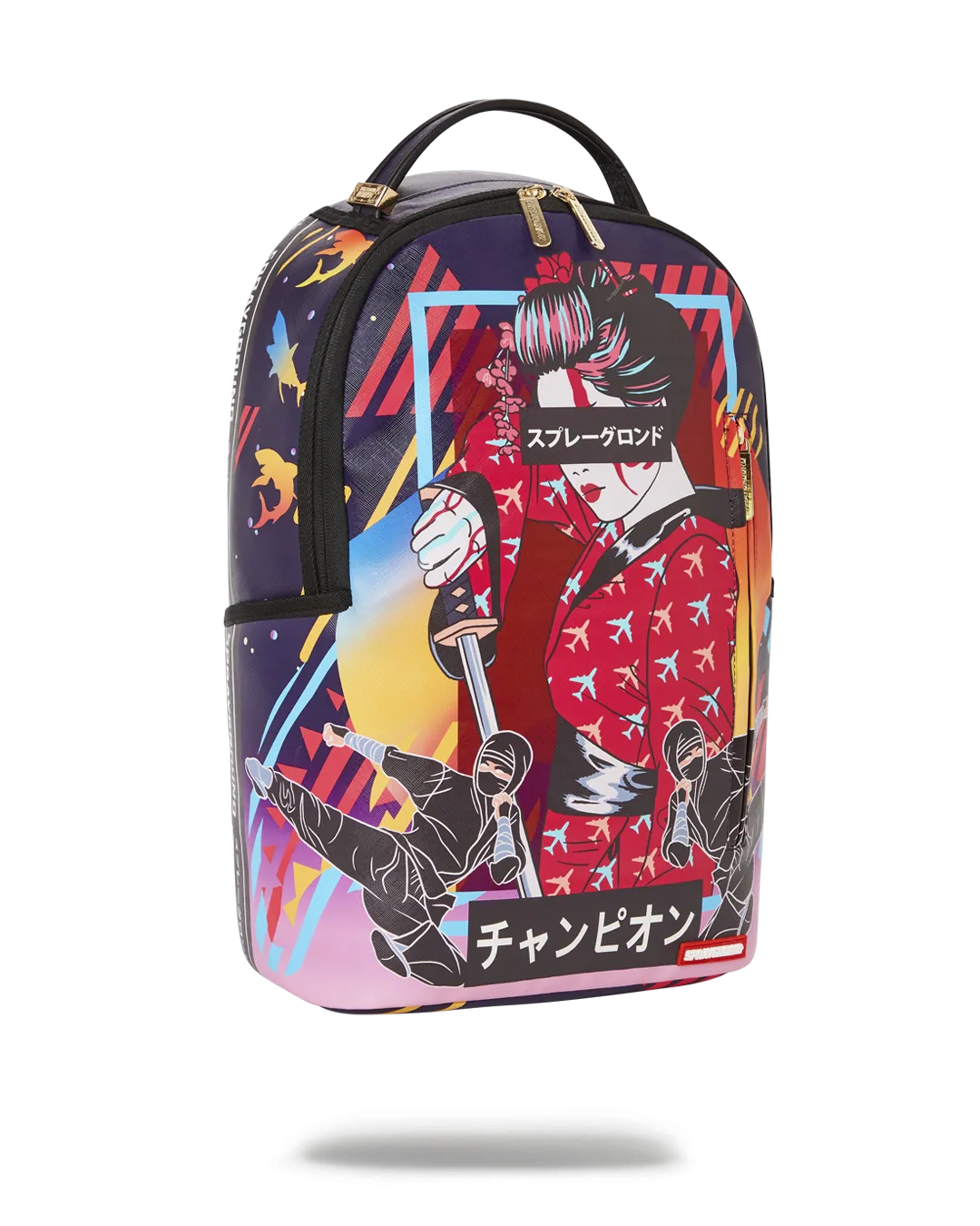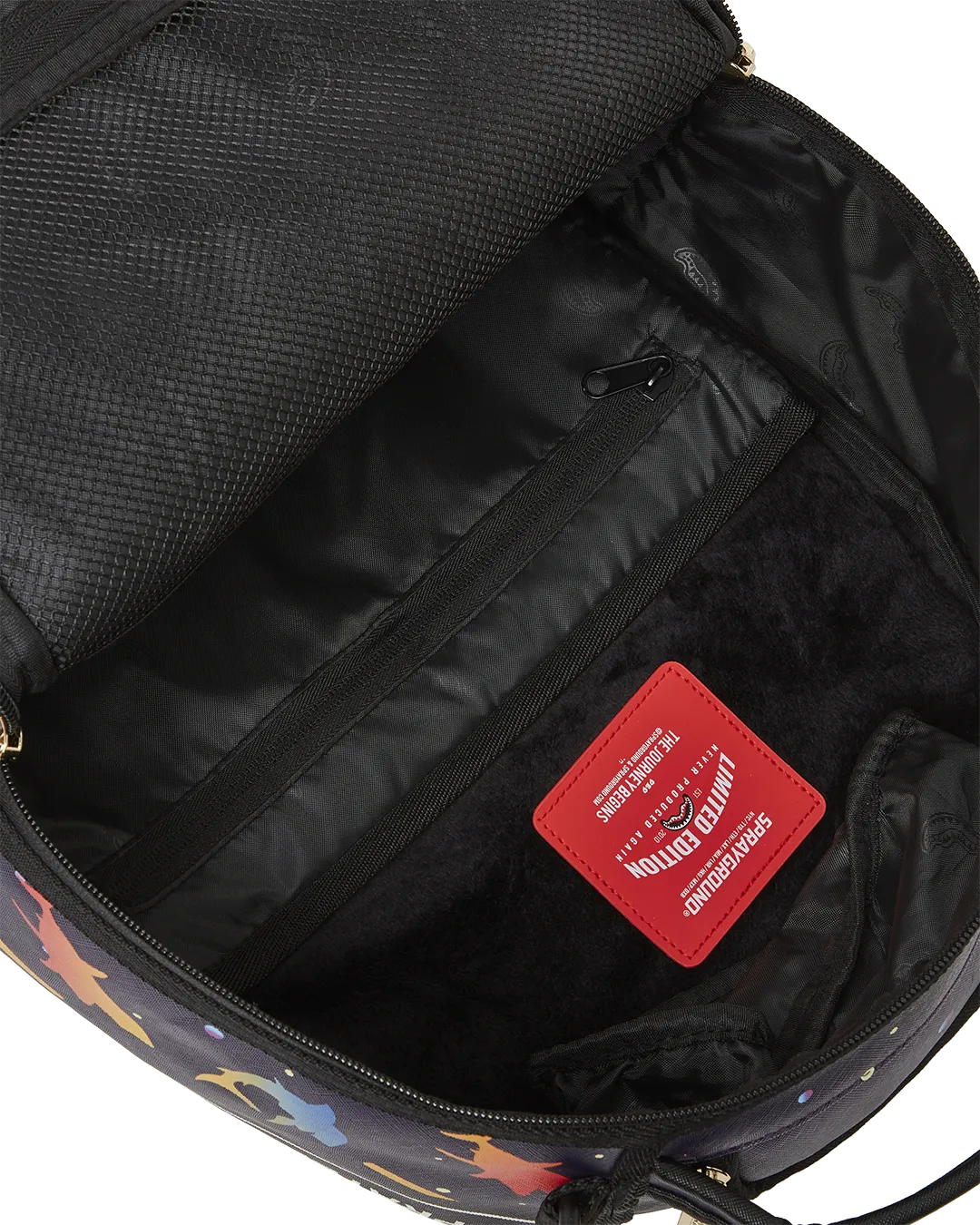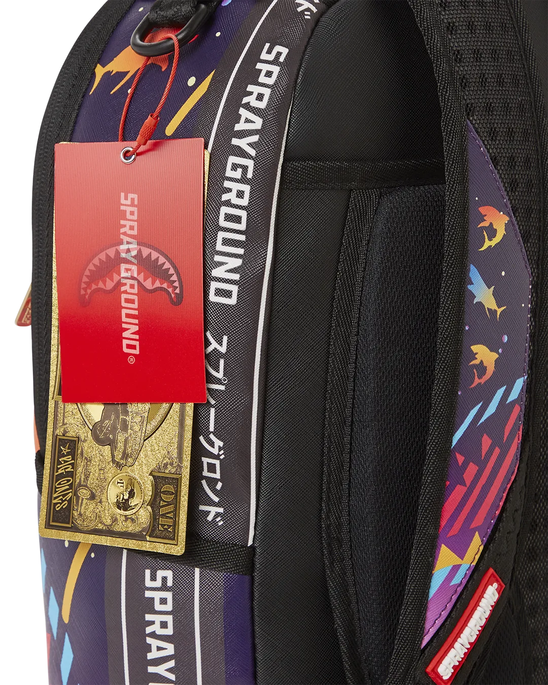 Dimensions: 18″ x 6″ x 11.5″ ? Front zipper pocket ? Side pockets ? Zippered Stash pocket ? Separate velour sunglass compartment ? Ergonomic mesh back padding ? Adjustable Straps for custom sizing ? Gold zippers with metal hardware ? Metal “Sprayground Authentic” badge ? Slide through back sleeve connects to carry-on luggage to free your hands