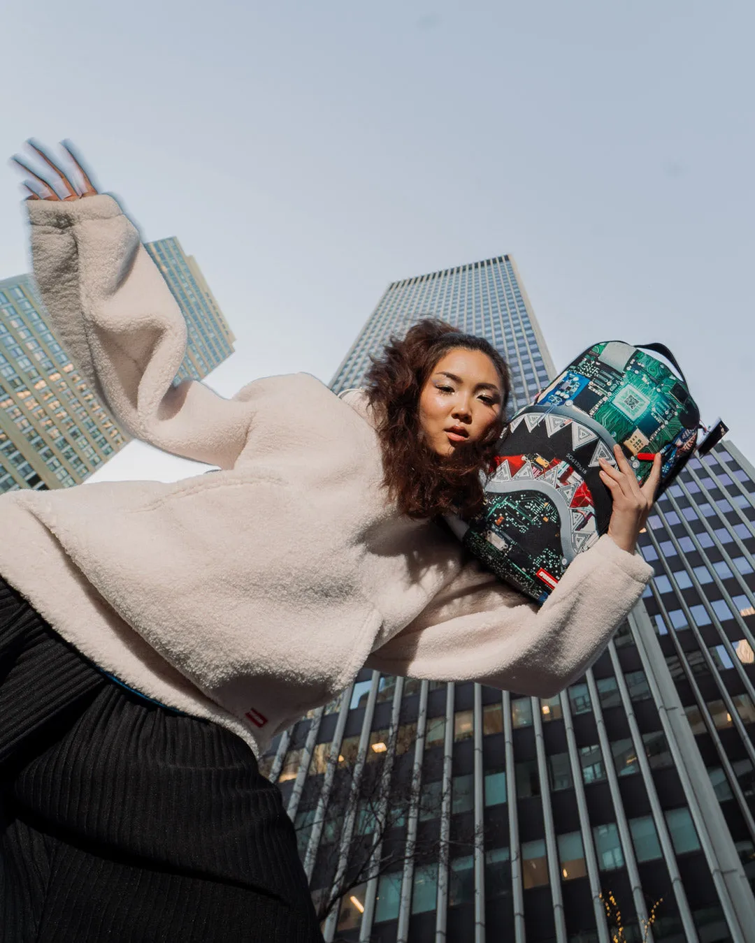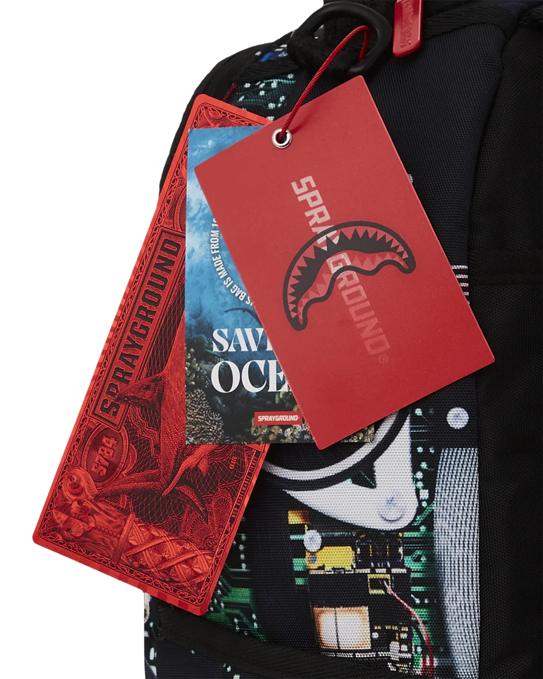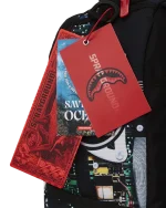 Dimensions: 18″ x 6″ x 11.5″ ? Front zipper pocket ? Side pockets ? Zippered Stash pocket ? Separate velour sunglass compartment ? Ergonomic mesh back padding ? Adjustable Straps for custom sizing ? Gold zippers with metal hardware ? Metal “Sprayground Authentic” badge ? Slide through back sleeve connects to carry-on luggage to free your hands
