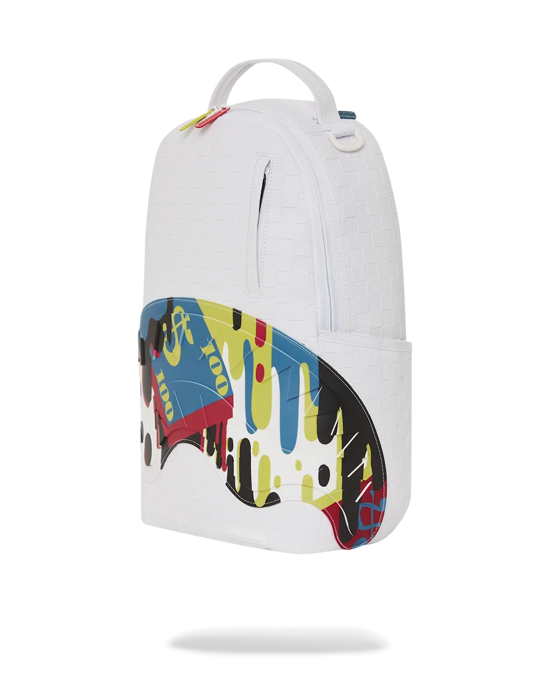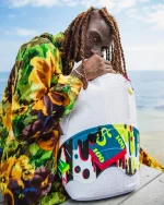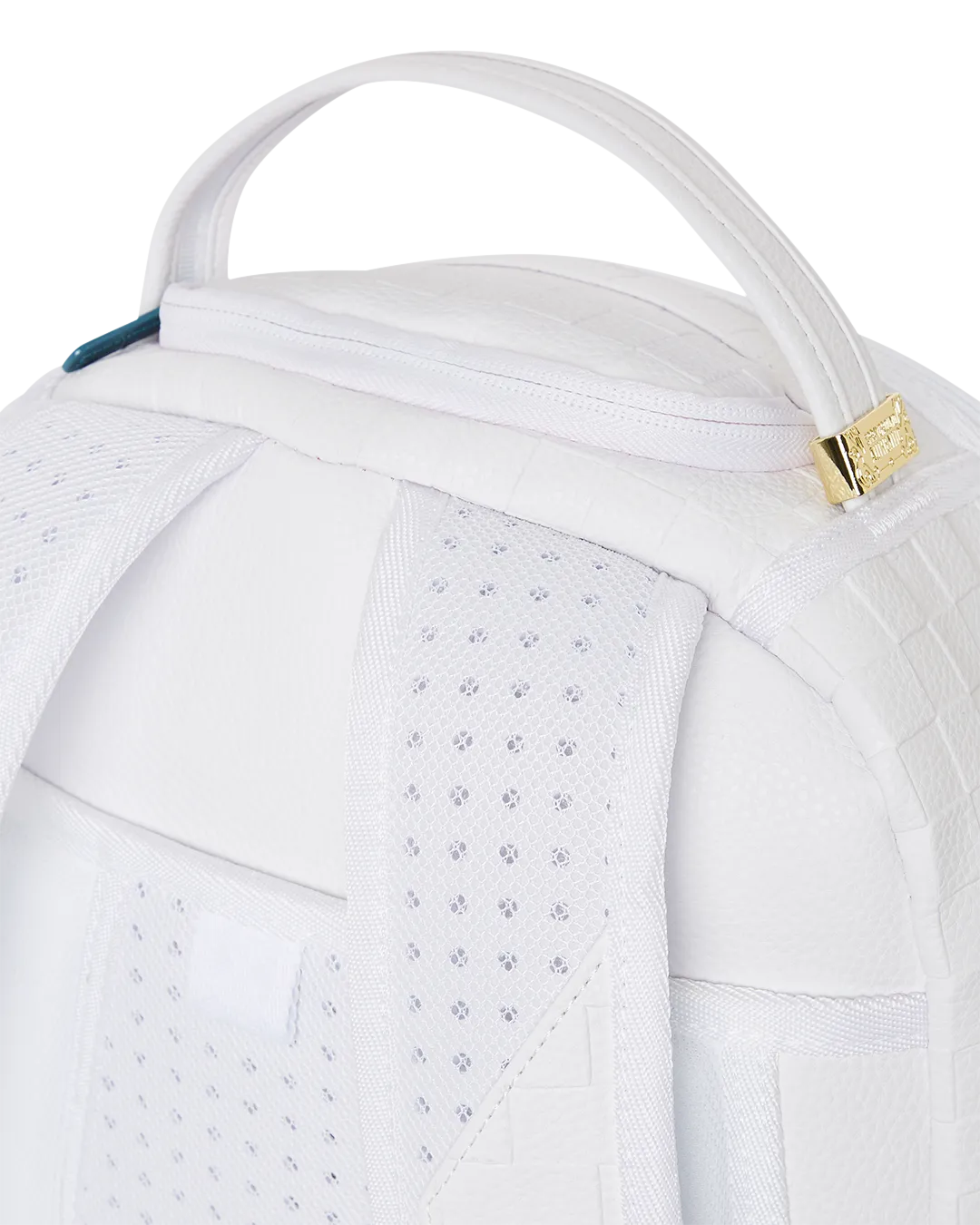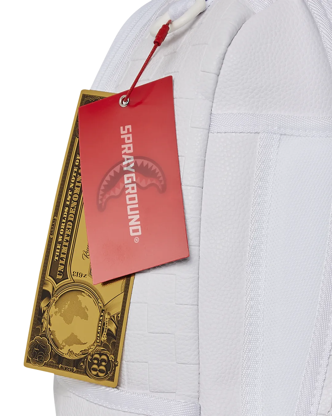 Dimensions: 18″ x 6″ x 11.5″ ? Front zipper pocket ? Side pockets ? Zippered Stash pocket ? Separate velour sunglass compartment ? Ergonomic mesh back padding ? Adjustable Straps for custom sizing ? Gold zippers with metal hardware ? Metal “Sprayground Authentic” badge ? Slide through back sleeve connects to carry-on luggage to free your hands