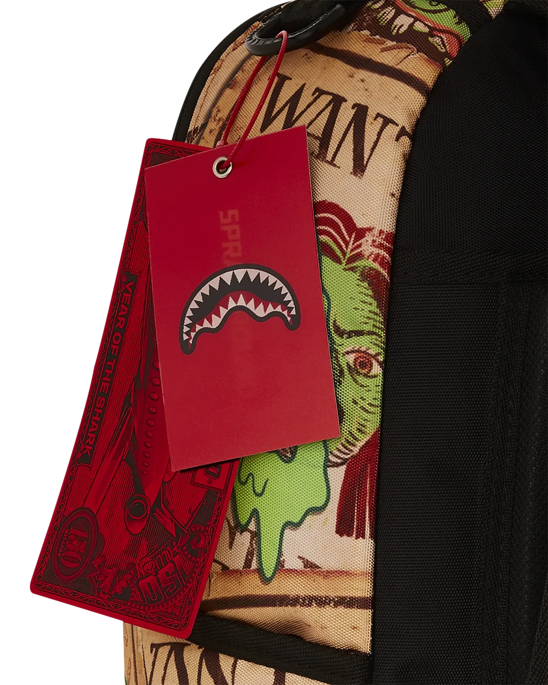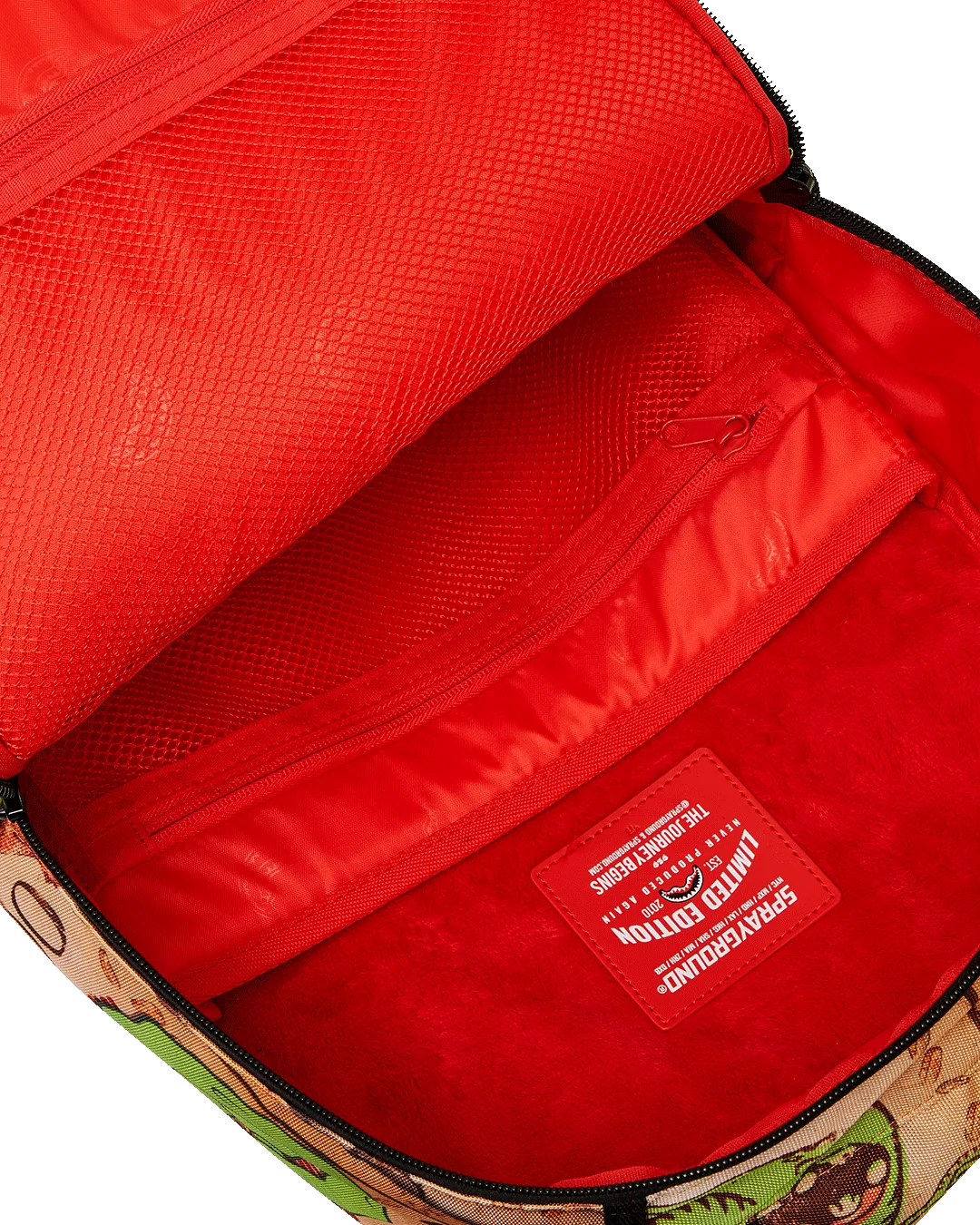 Dimensions: 18″ x 6″ x 11.5″ ? Front zipper pocket ? Side pockets ? Zippered Stash pocket ? Separate velour sunglass compartment ? Ergonomic mesh back padding ? Adjustable Straps for custom sizing ? Gold zippers with metal hardware ? Metal “Sprayground Authentic” badge ? Slide through back sleeve connects to carry-on luggage to free your hands