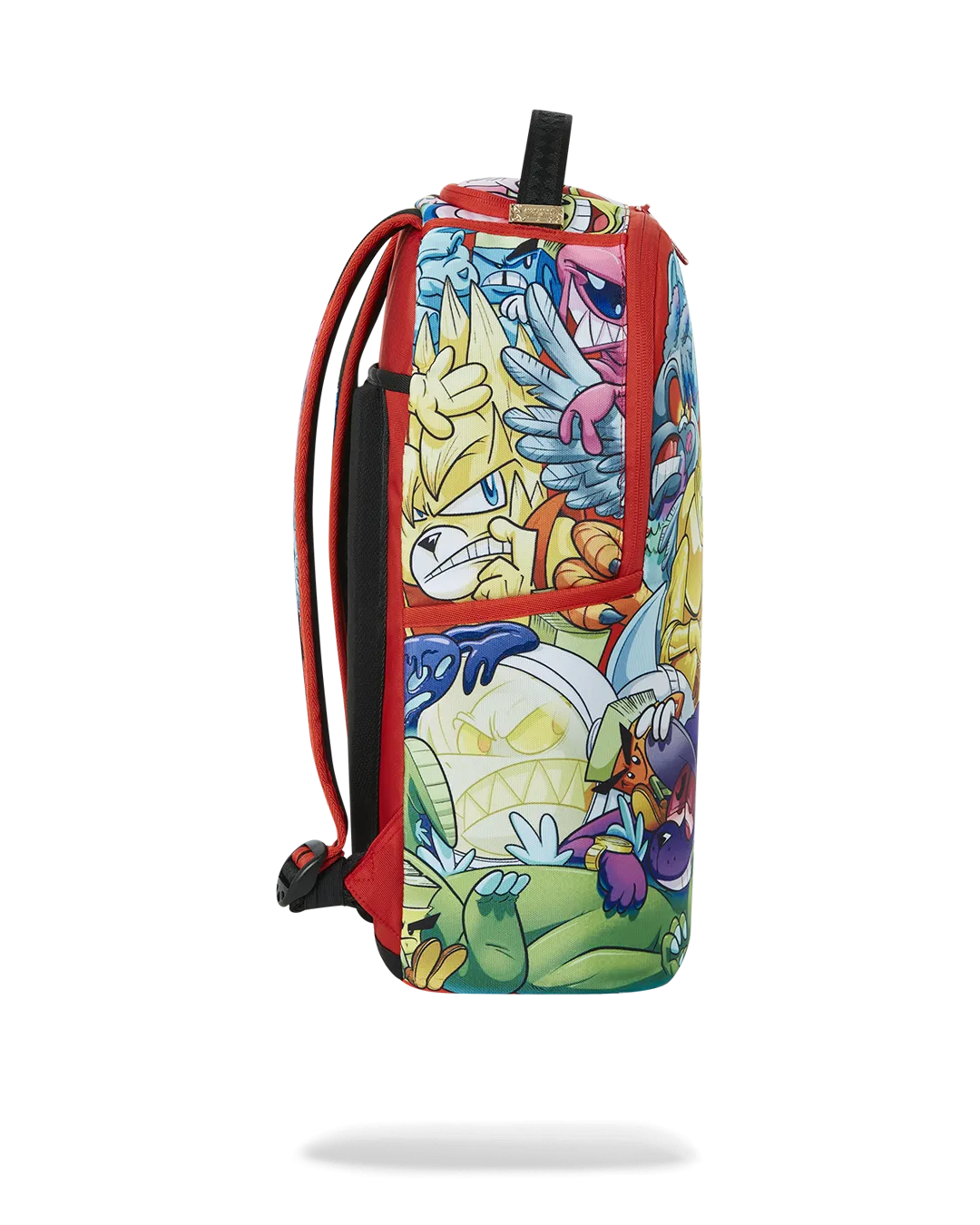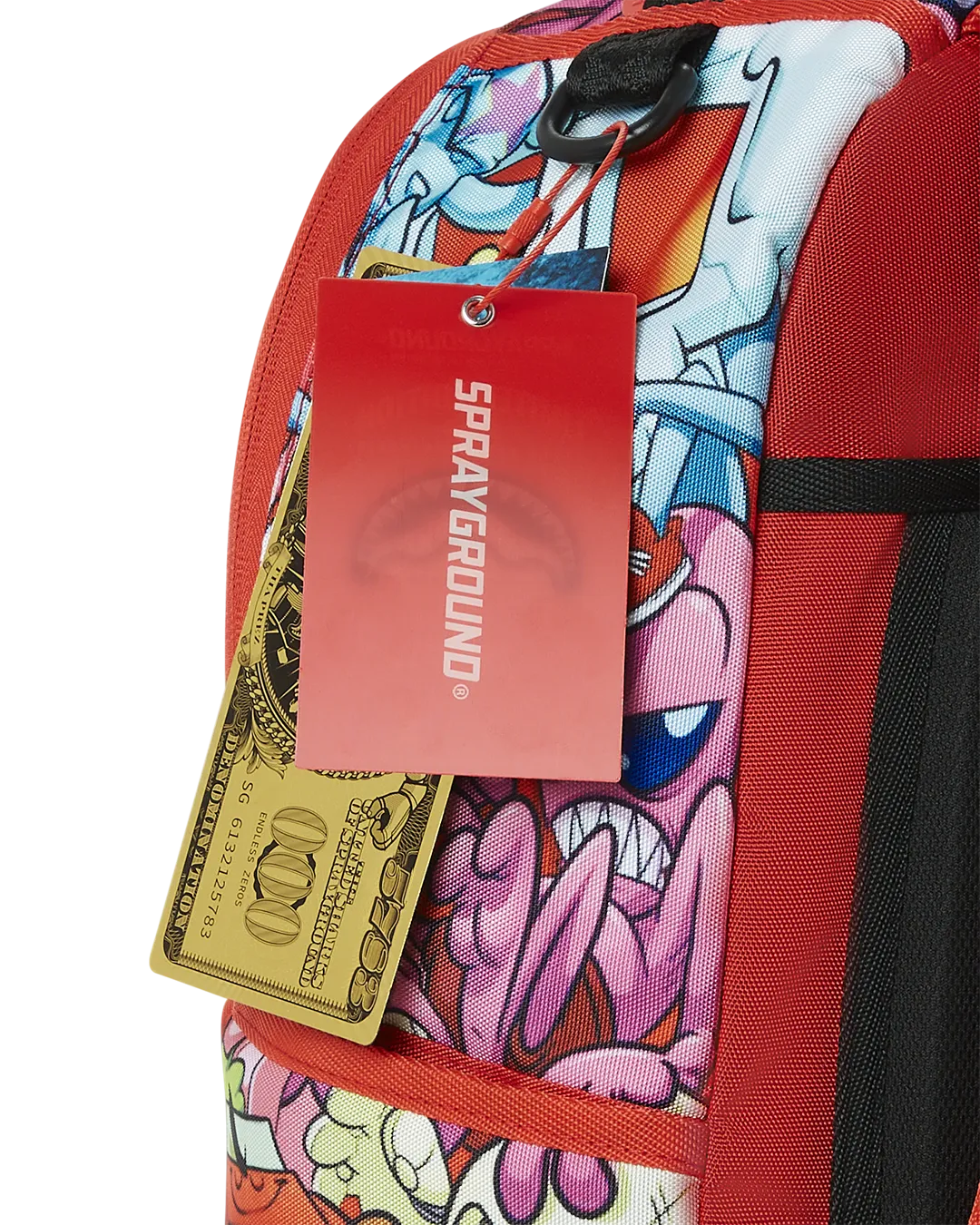 Dimensions: 18″ x 6″ x 11.5″ ? Front zipper pocket ? Side pockets ? Zippered Stash pocket ? Separate velour sunglass compartment ? Ergonomic mesh back padding ? Adjustable Straps for custom sizing ? Gold zippers with metal hardware ? Metal “Sprayground Authentic” badge ? Slide through back sleeve connects to carry-on luggage to free your hands