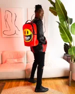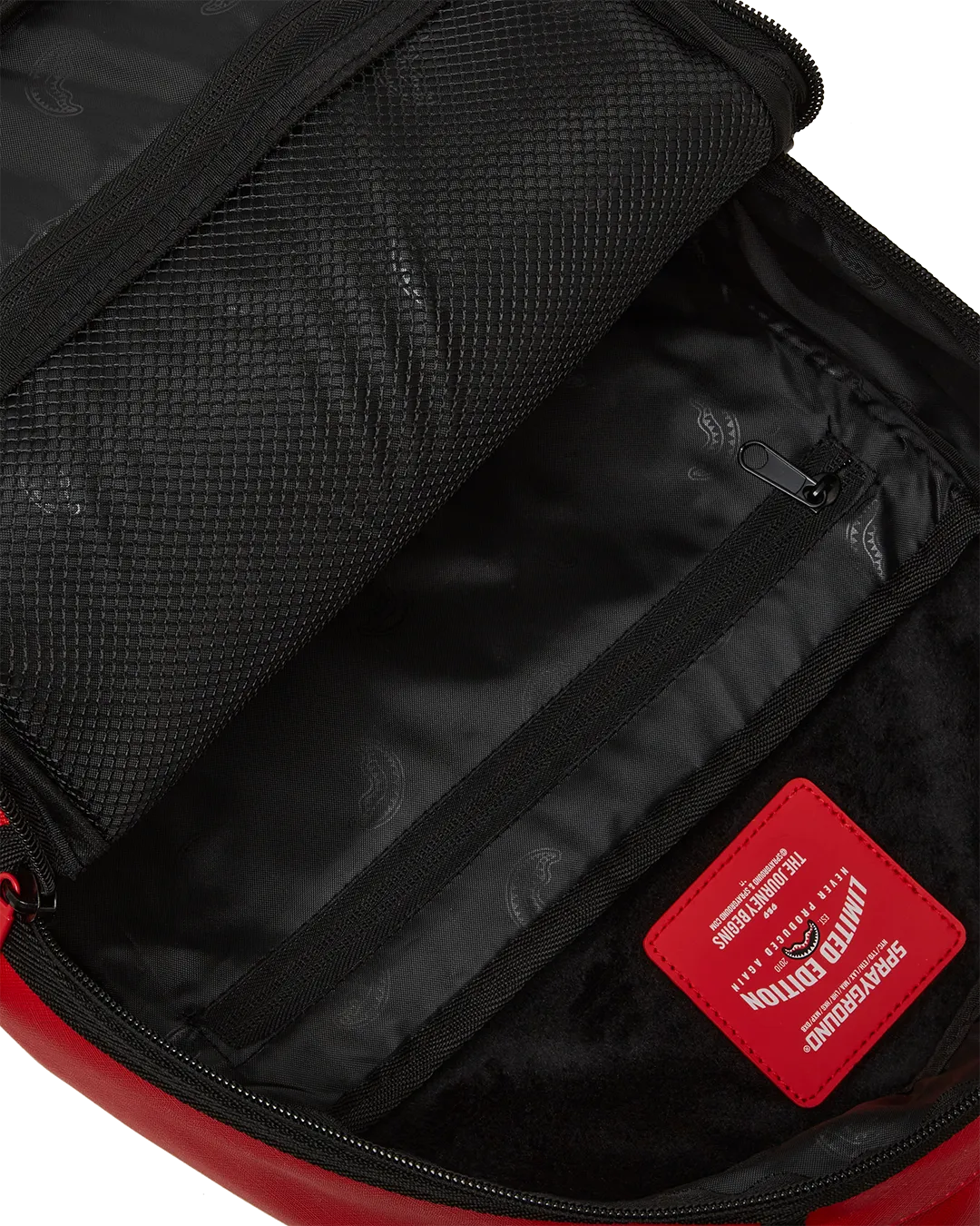 Dimensions: 18″ x 6″ x 11.5″ ? Front zipper pocket ? Side pockets ? Zippered Stash pocket ? Separate velour sunglass compartment ? Ergonomic mesh back padding ? Adjustable Straps for custom sizing ? Gold zippers with metal hardware ? Metal “Sprayground Authentic” badge ? Slide through back sleeve connects to carry-on luggage to free your hands