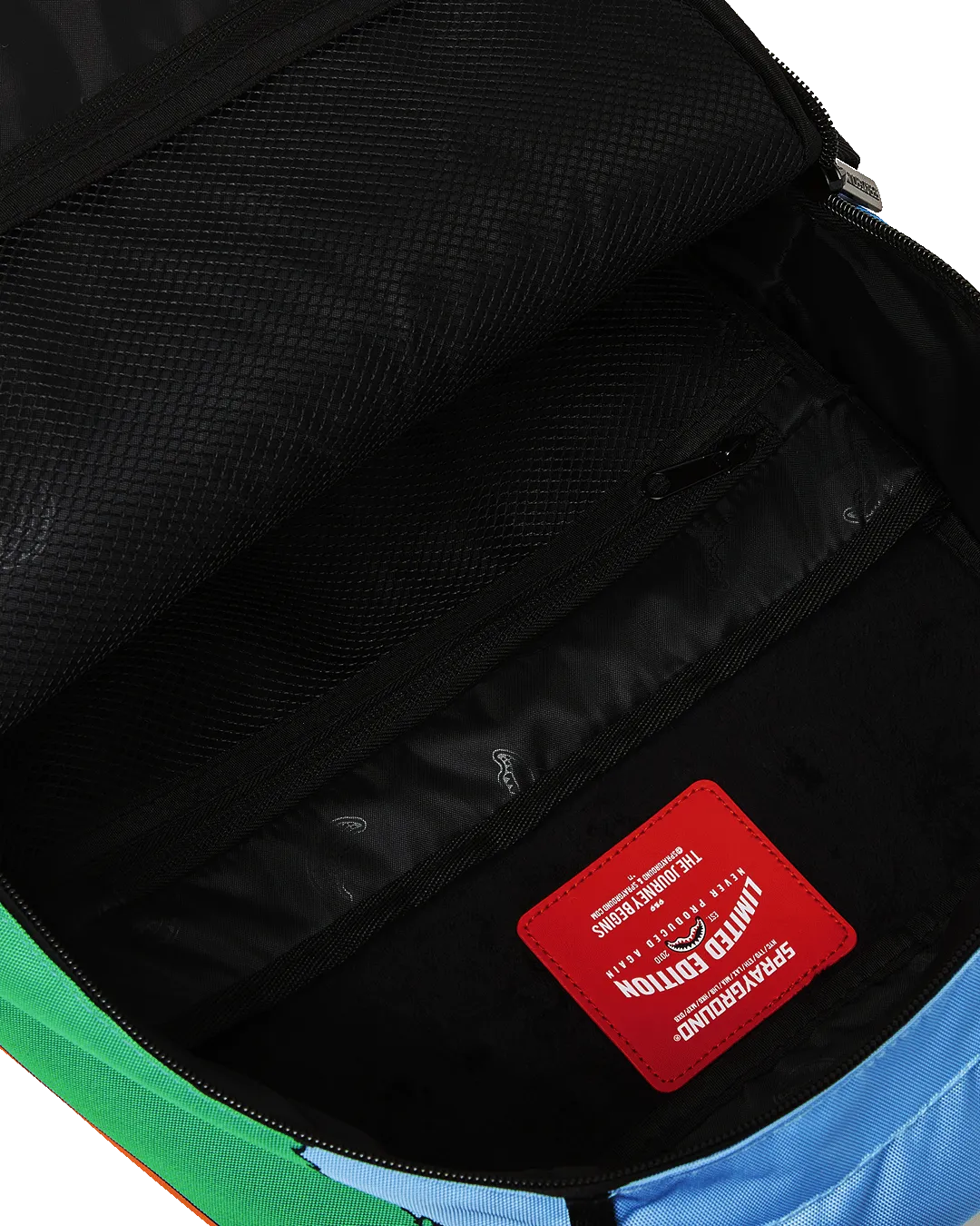Dimensions: 18″ x 6″ x 11.5″ ? Front zipper pocket ? Side pockets ? Zippered Stash pocket ? Separate velour sunglass compartment ? Ergonomic mesh back padding ? Adjustable Straps for custom sizing ? Gold zippers with metal hardware ? Metal “Sprayground Authentic” badge ? Slide through back sleeve connects to carry-on luggage to free your hands