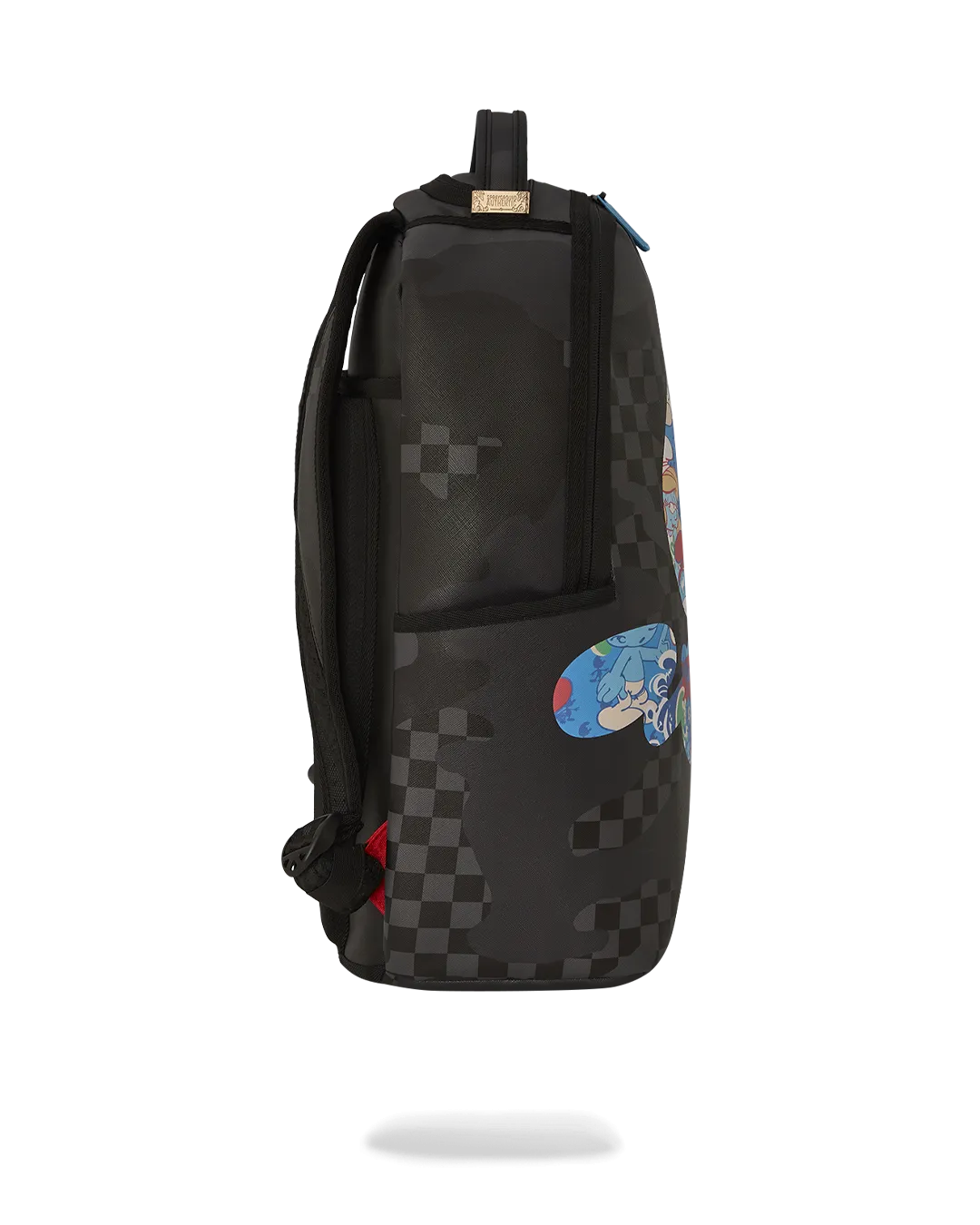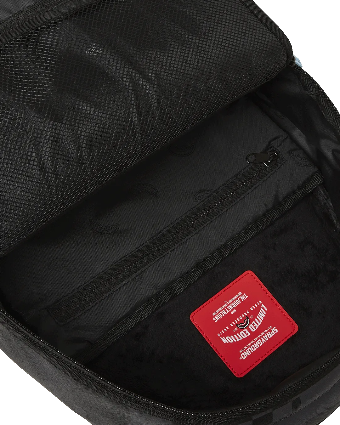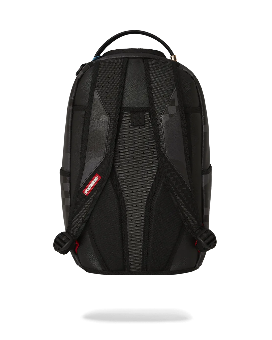 Dimensions: 18″ x 6″ x 11.5″ ? Front zipper pocket ? Side pockets ? Zippered Stash pocket ? Separate velour sunglass compartment ? Ergonomic mesh back padding ? Adjustable Straps for custom sizing ? Gold zippers with metal hardware ? Metal “Sprayground Authentic” badge ? Slide through back sleeve connects to carry-on luggage to free your hands