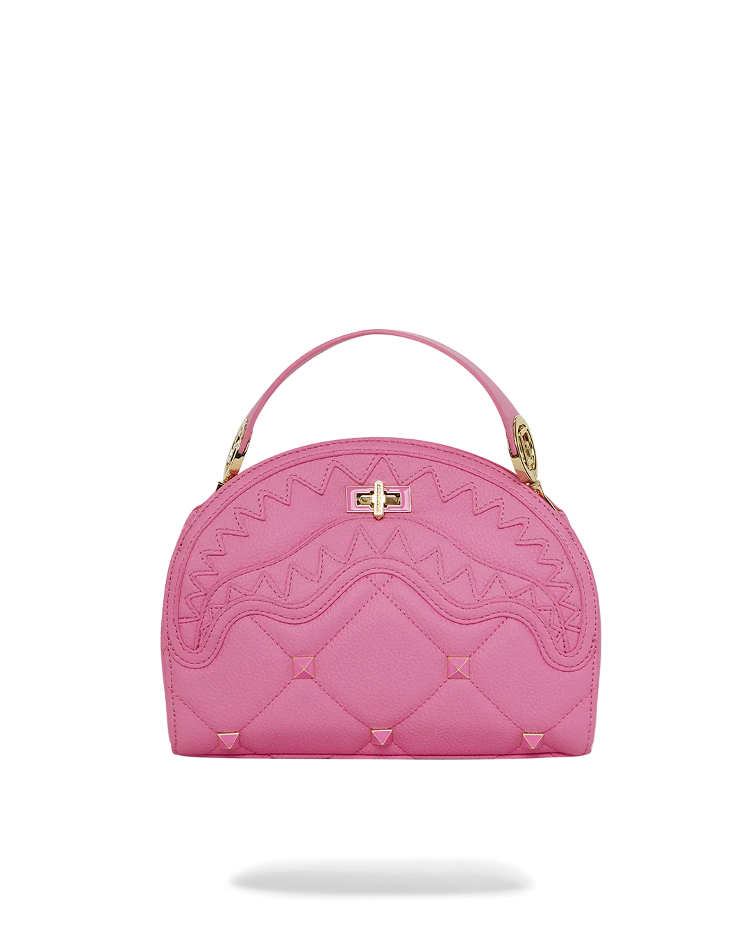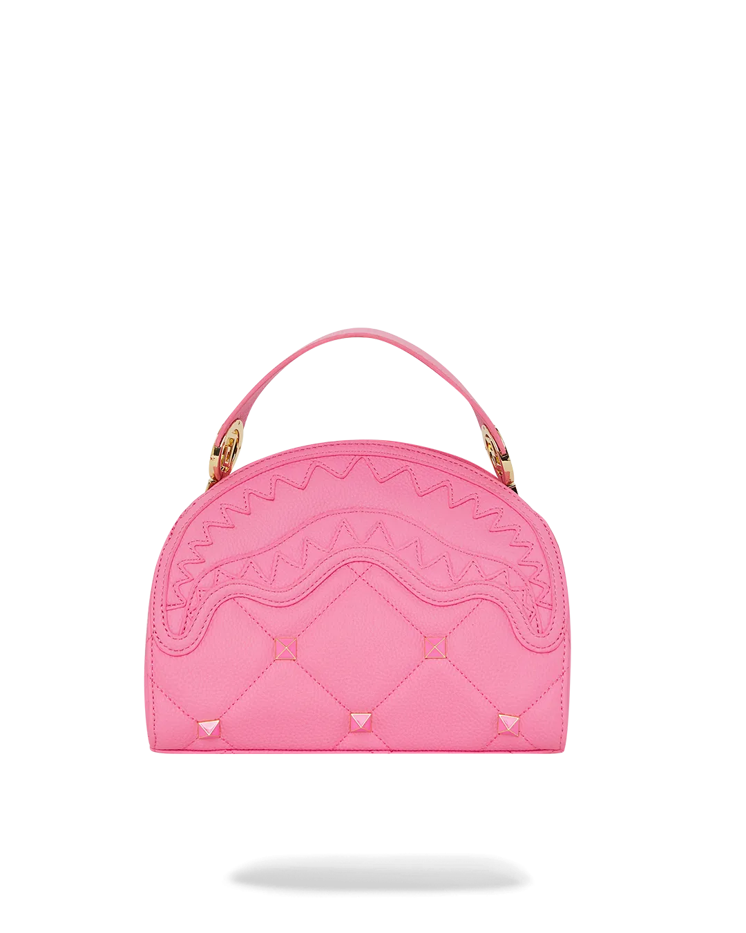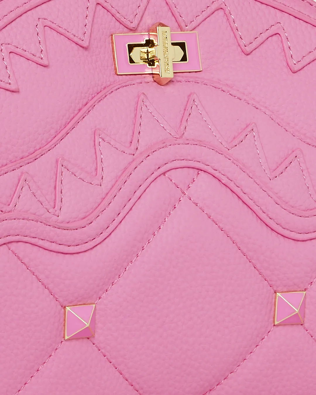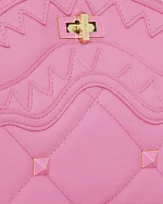 Quilted and embellished pink/ gold enamel studs & custom Sprayground logo hardware