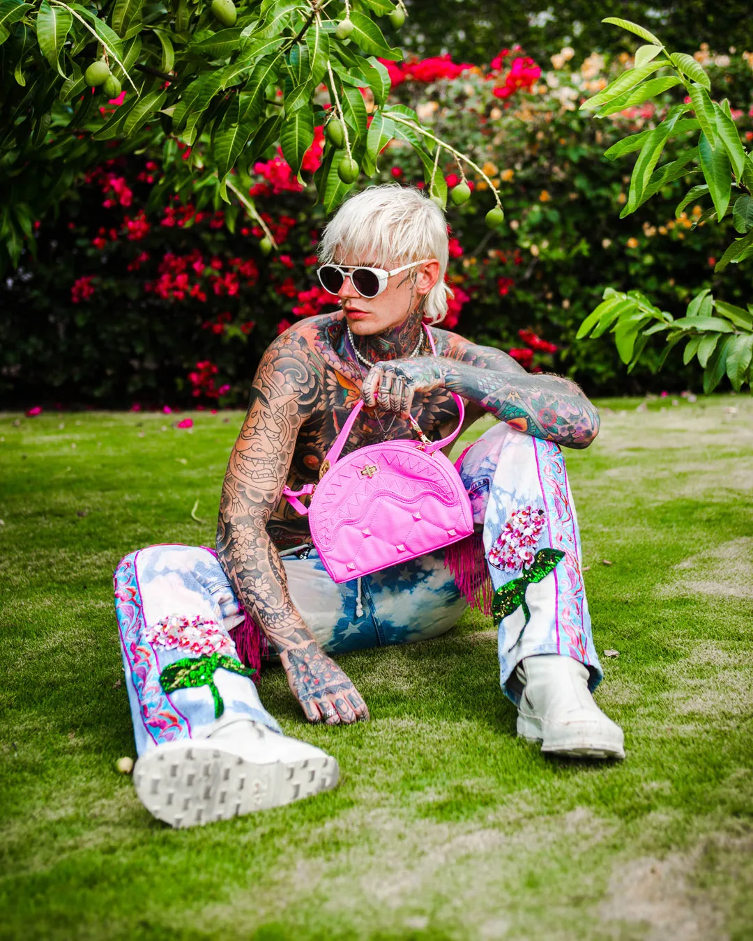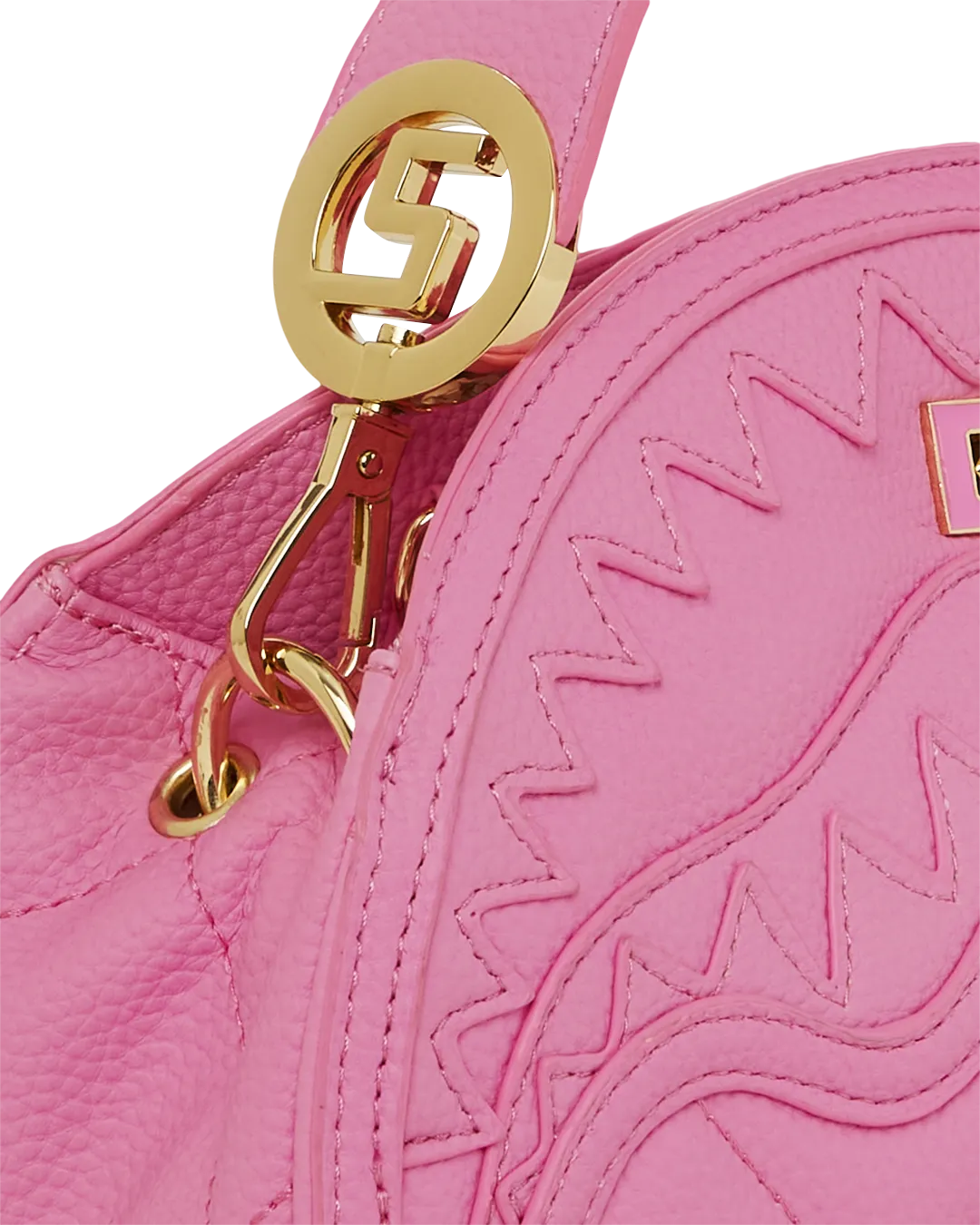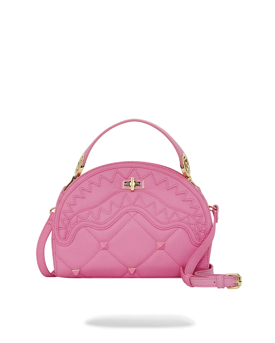 Quilted and embellished pink/ gold enamel studs & custom Sprayground logo hardware