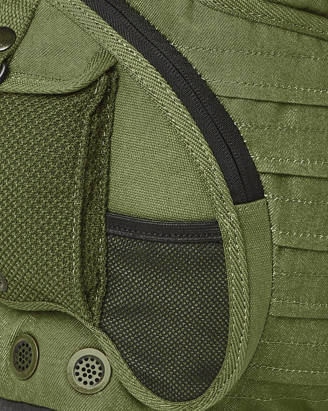 Dimensions: 18″ x 6″ x 11.5″ ? Front zipper pocket ? Side pockets ? Zippered Stash pocket ? Separate velour sunglass compartment ? Adjustable Straps for custom sizing ? Gold zippers with metal hardware ? Metal “Sprayground Authentic” badge?