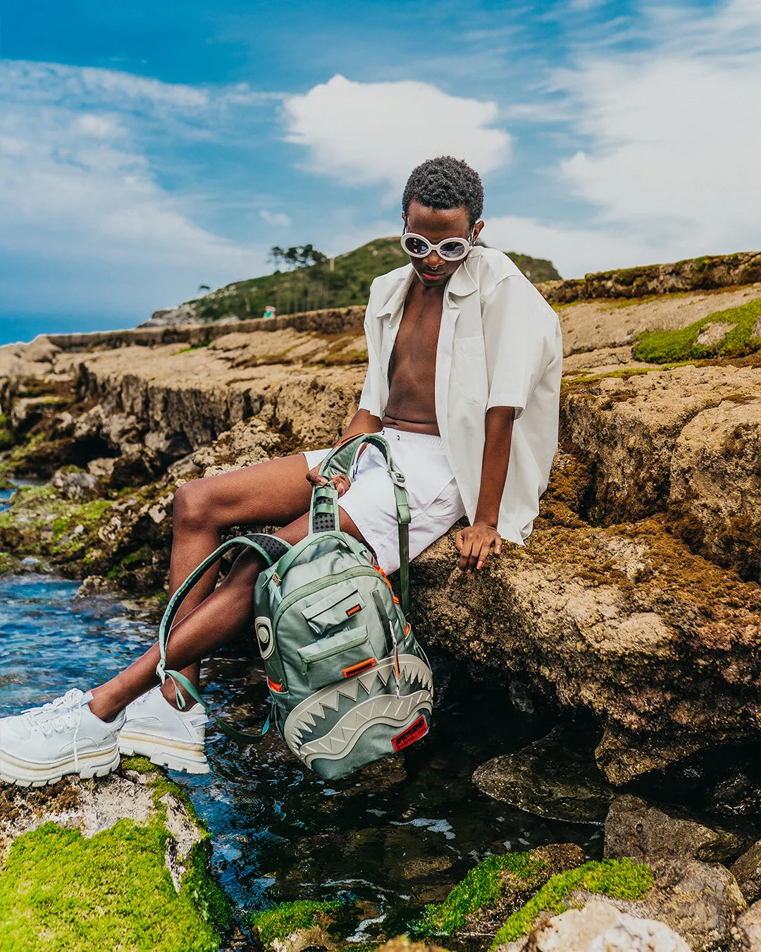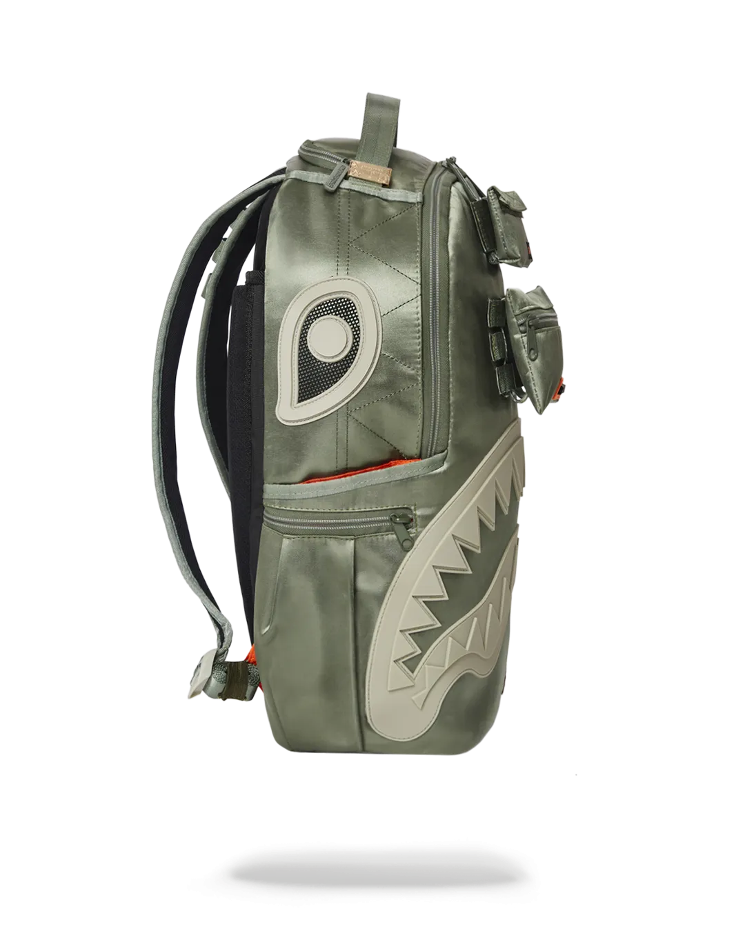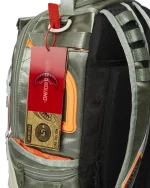 Dimensions: 18″ x 6″ x 11.5″ ? Front zipper pocket ? Side pockets ? Zippered Stash pocket ? Separate velour sunglass compartment ? Ergonomic mesh back padding ? Adjustable Straps for custom sizing ? Red zippers with metal hardware ? Metal “Sprayground Authentic” badge ? Slide through back sleeve connects to carry-on luggage to free your hands