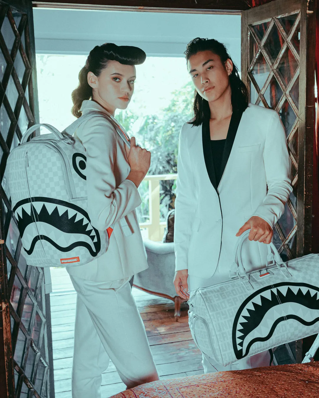 Dimensions: 18″ x 6″ x 11.5″ ? Front zipper pocket ? Side pockets ? Zippered Stash pocket ? Separate velour sunglass compartment ? Ergonomic mesh back padding ? Adjustable Straps for custom sizing ? Gold zippers with metal hardware ? Metal “Sprayground Authentic” badge ? Slide through back sleeve connects to carry-on luggage to free your hands