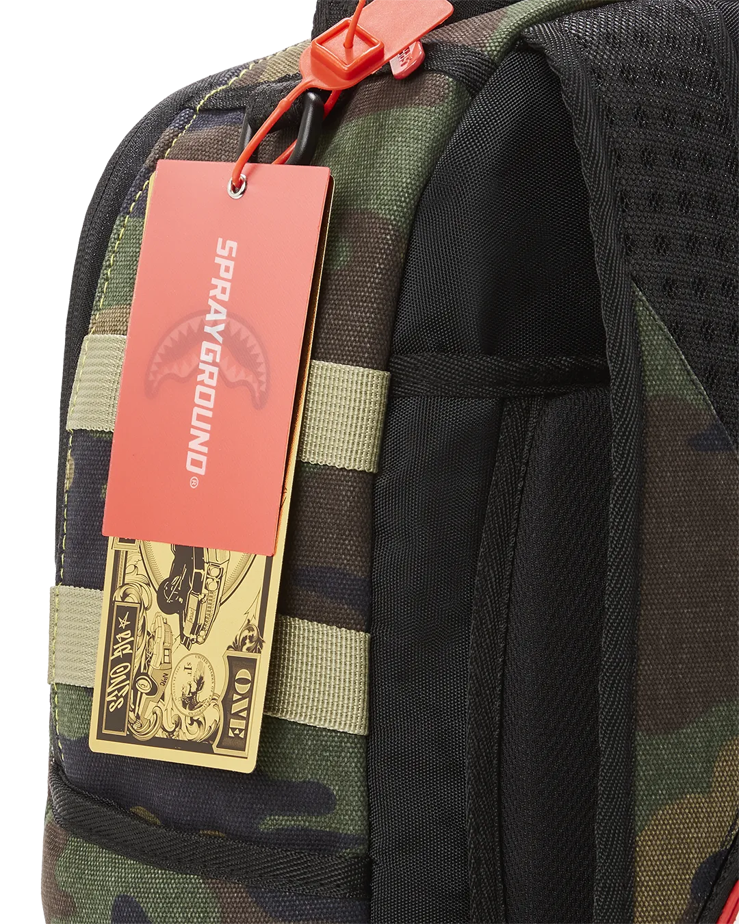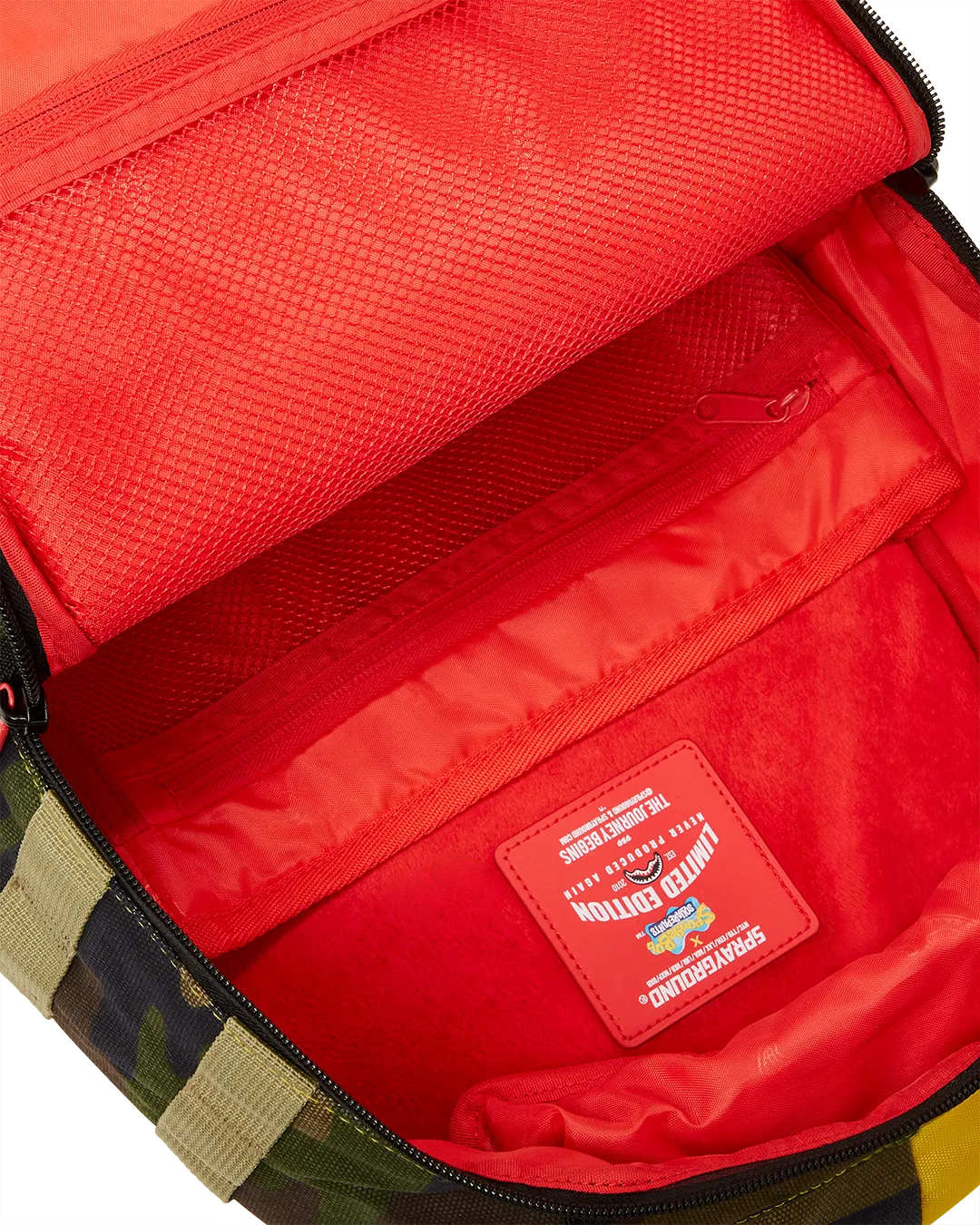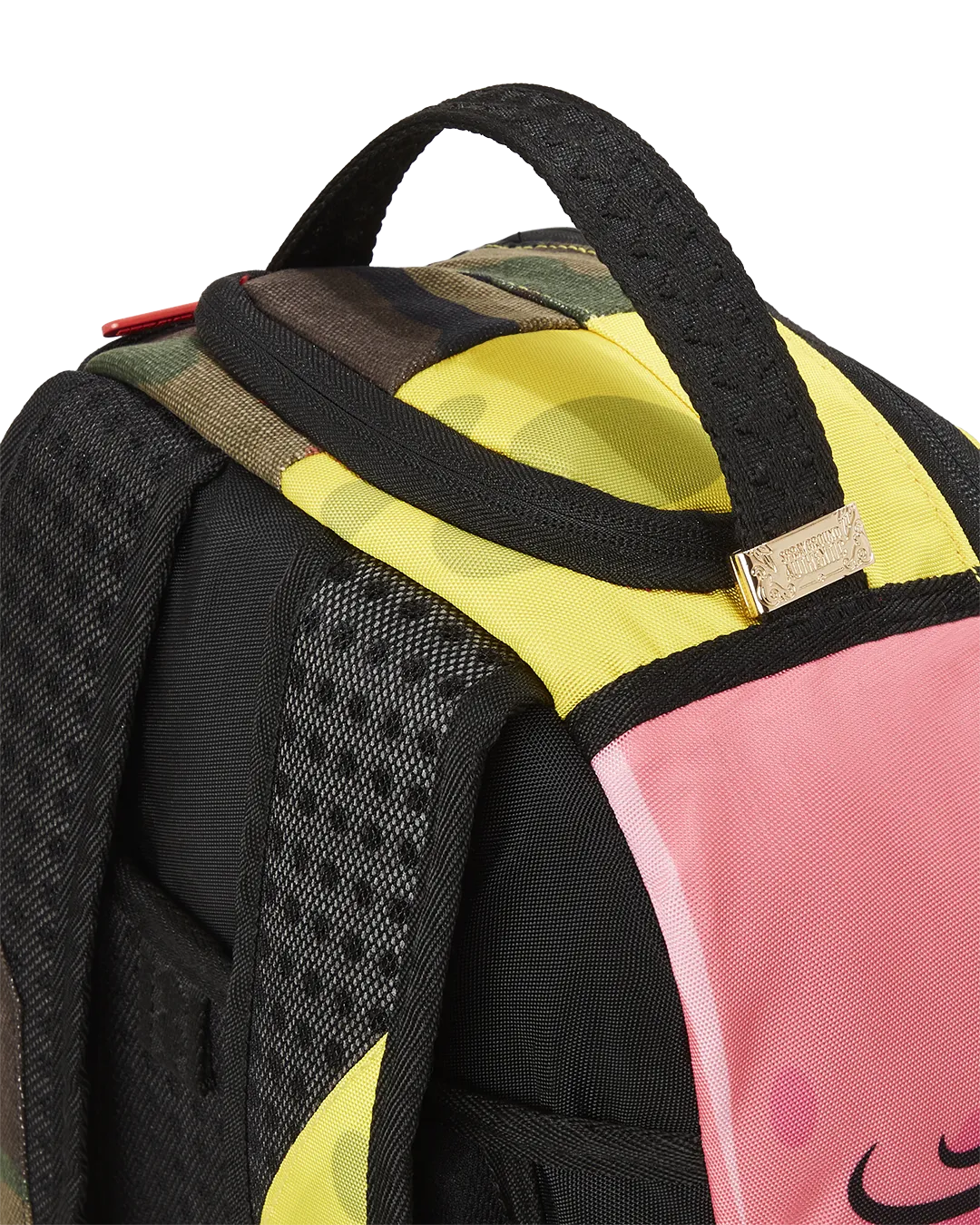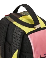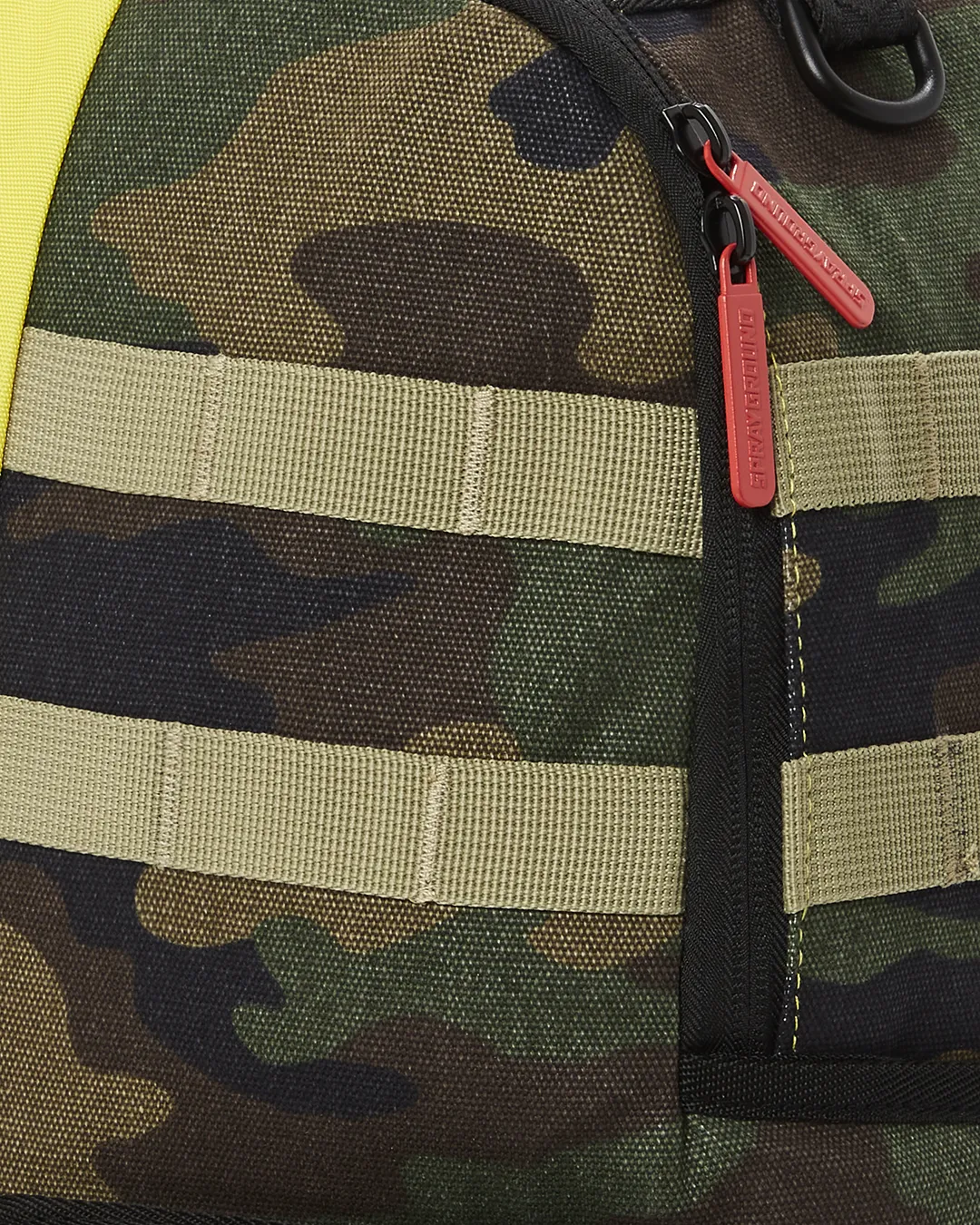 Dimensions: 18″ x 6″ x 11.5″ ? Front zipper pocket ? Side pockets ? Zippered Stash pocket ? Separate velour sunglass compartment ? Ergonomic mesh back padding ? Adjustable Straps for custom sizing ? Green zippers with metal hardware ? Metal “Sprayground Authentic” badge ? Slide through back sleeve connects to carry on luggage to free your hands