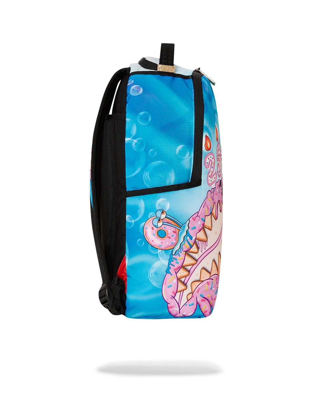 Dimensions: 18″ x 6″ x 11.5″ ? Front zipper pocket ? Side pockets ? Zippered Stash pocket ? Separate velour sunglass compartment ? Ergonomic mesh back padding ? Adjustable Straps for custom sizing ? Gold zippers with metal hardware ? Metal “Sprayground Authentic” badge ? Slide through back sleeve connects to carry-on luggage to free your hands