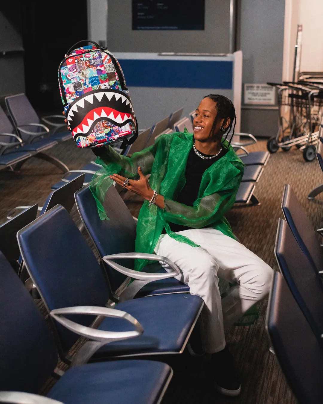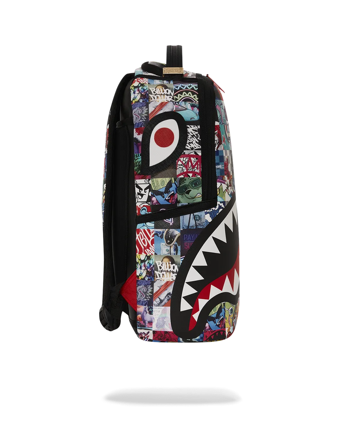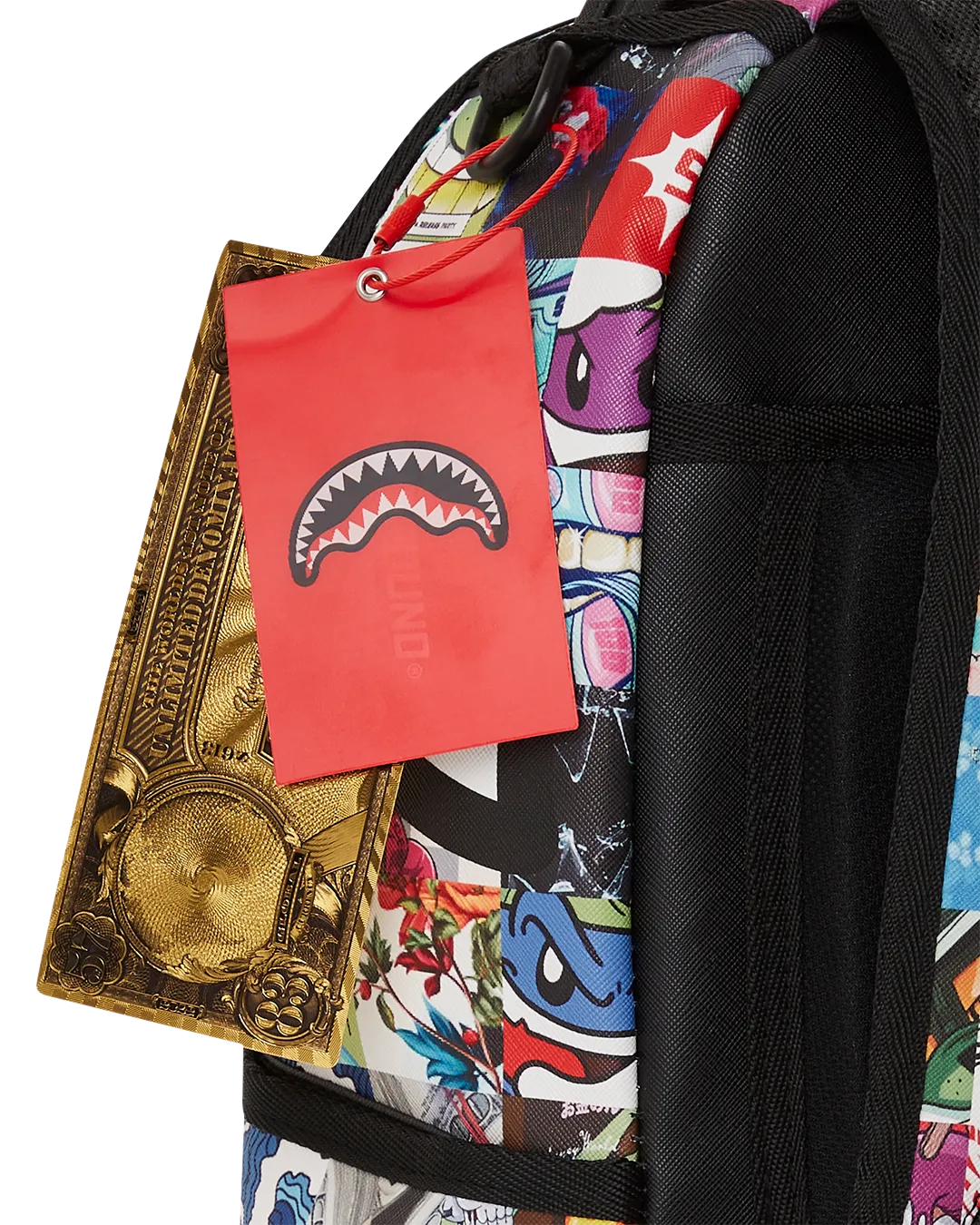 Dimensions: 18″ x 6″ x 11.5″ ? Front zipper pocket ? Side pockets ? Zippered Stash pocket ? Separate velour sunglass compartment ? Ergonomic mesh back padding ? Adjustable Straps for custom sizing ? Gold zippers with metal hardware ? Metal “Sprayground Authentic” badge ? Slide through back sleeve connects to carry-on luggage to free your hands