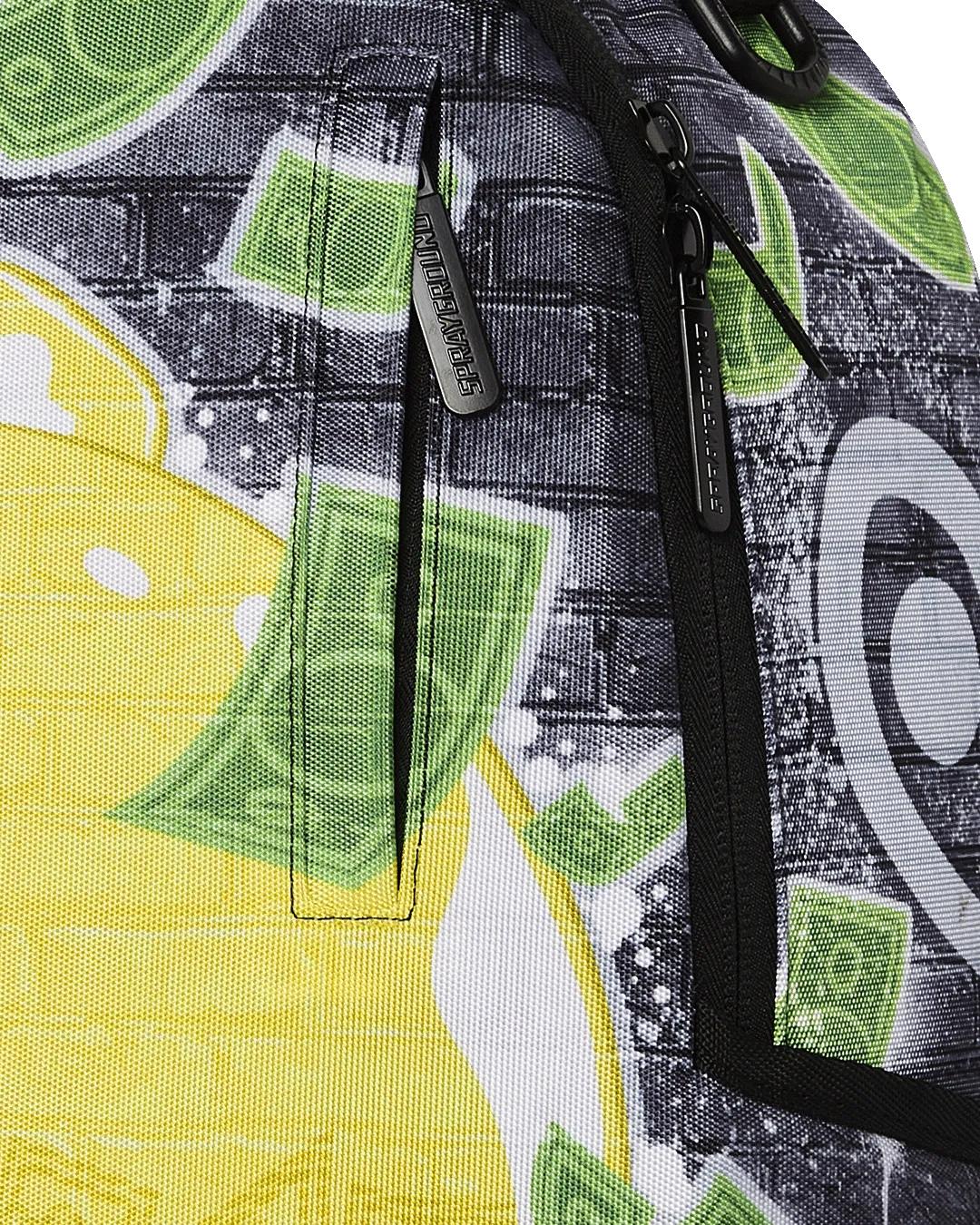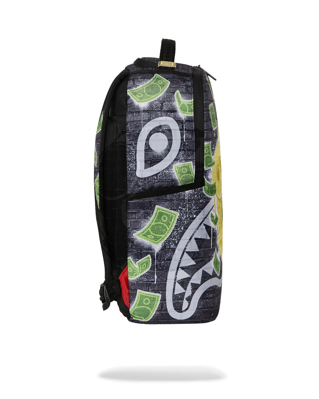 Dimensions: 18″ x 6″ x 11.5″ ? Front zipper pocket ? Side pockets ? Zippered Stash pocket ? Separate velour sunglass compartment ? Ergonomic mesh back padding ? Adjustable Straps for custom sizing ? Gold zippers with metal hardware ? Metal “Sprayground Authentic” badge ? Slide through back sleeve connects to carry-on luggage to free your hands