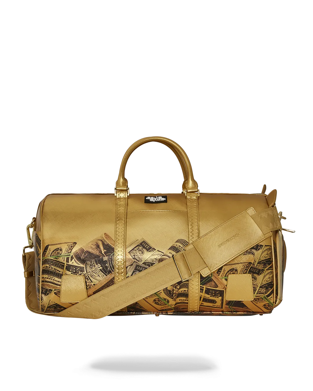 Dimensions: 20″ x 10″ x 10.75″ ? Metal zipper pocket??Back Zippers ?Zippered sneaker pocket ? gold zippers ? Adjustable Straps for custom sizing ?Metal Zippers with Metal Hardware ? bag of Sprayground money