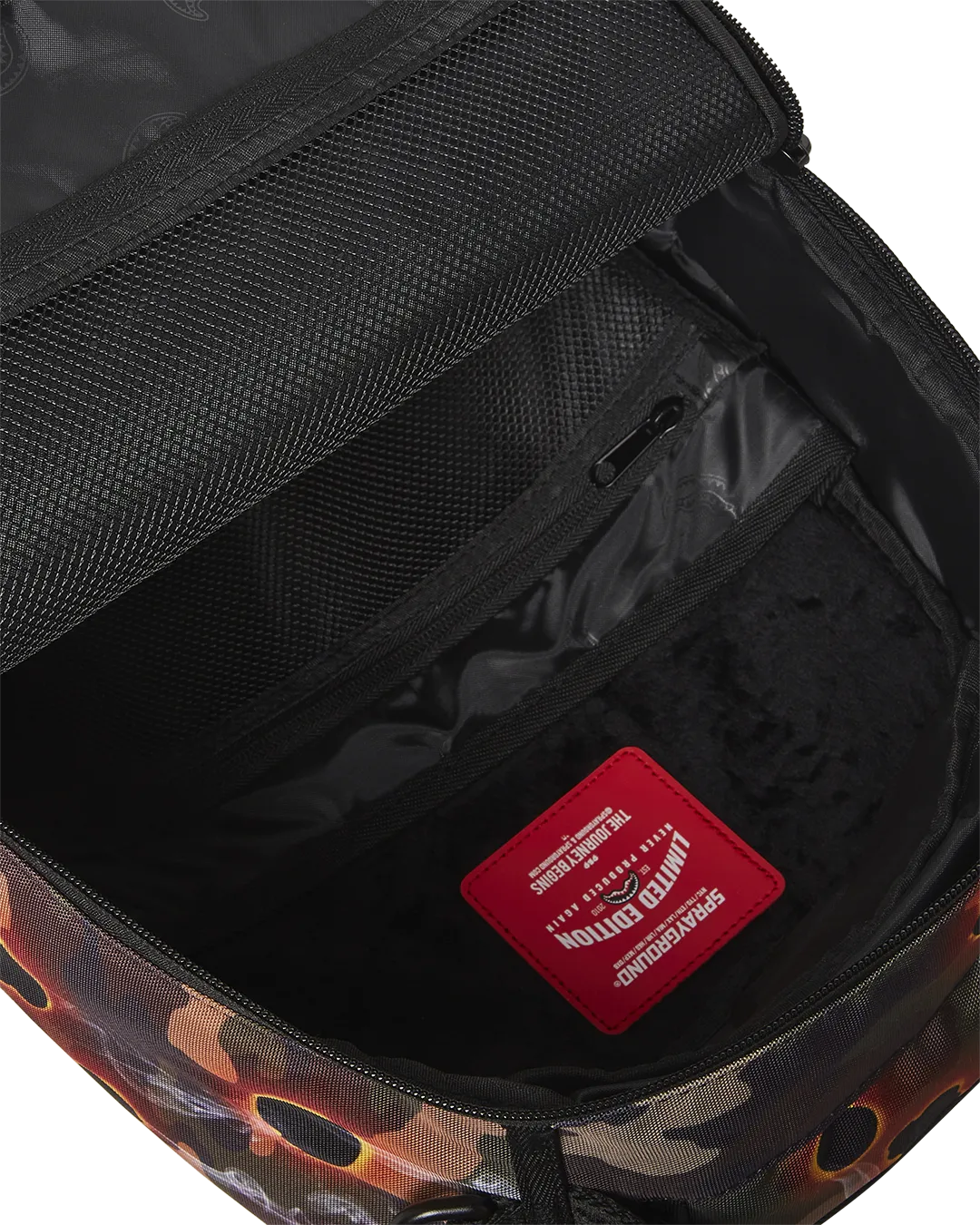 Dimensions: 18″ x 6″ x 11.5″ ? Front zipper pocket ? Side pockets ? Zippered Stash pocket ? Separate velour sunglass compartment ? Ergonomic mesh back padding ? Adjustable Straps for custom sizing ? Gold zippers with metal hardware ? Metal “Sprayground Authentic” badge ? Slide through back sleeve connects to carry-on luggage to free your hands