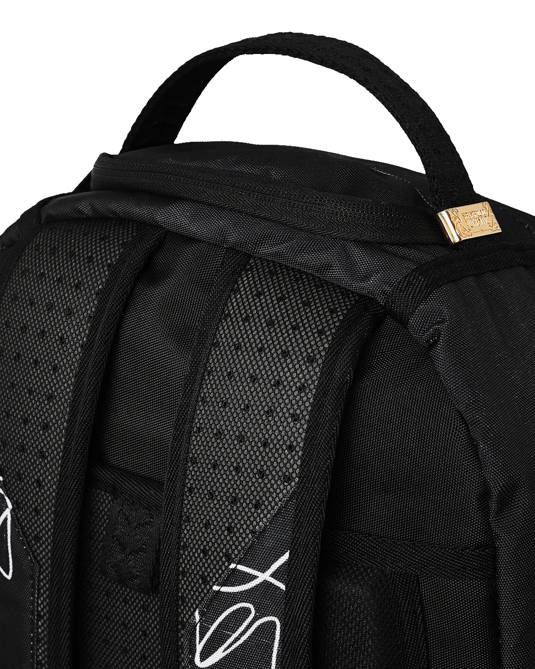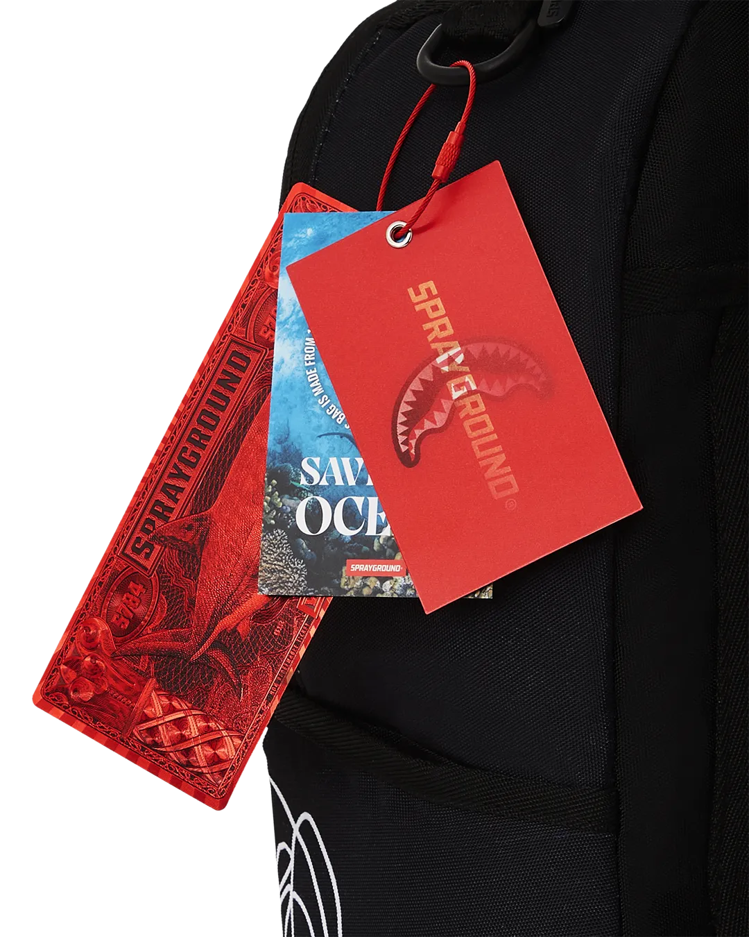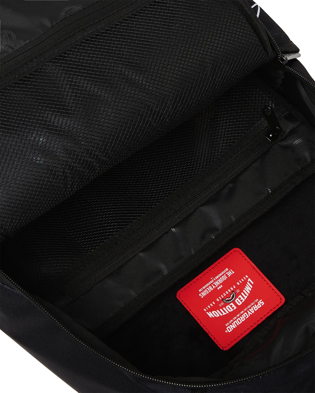 Dimensions: 18″ x 6″ x 11.5″ ? Front zipper pocket ? Side pockets ? Zippered Stash pocket ? Separate velour sunglass compartment ? Ergonomic mesh back padding ? Adjustable Straps for custom sizing ? Gold zippers with metal hardware ? Metal “Sprayground Authentic” badge ? Slide through back sleeve connects to carry-on luggage to free your hands