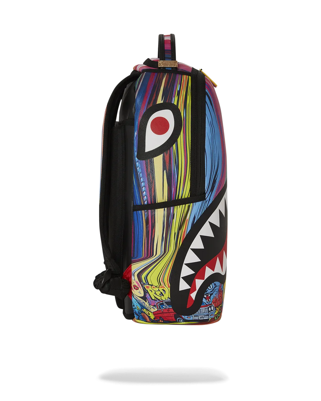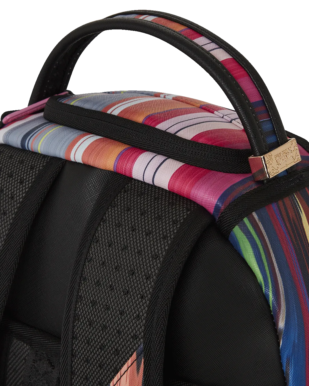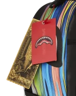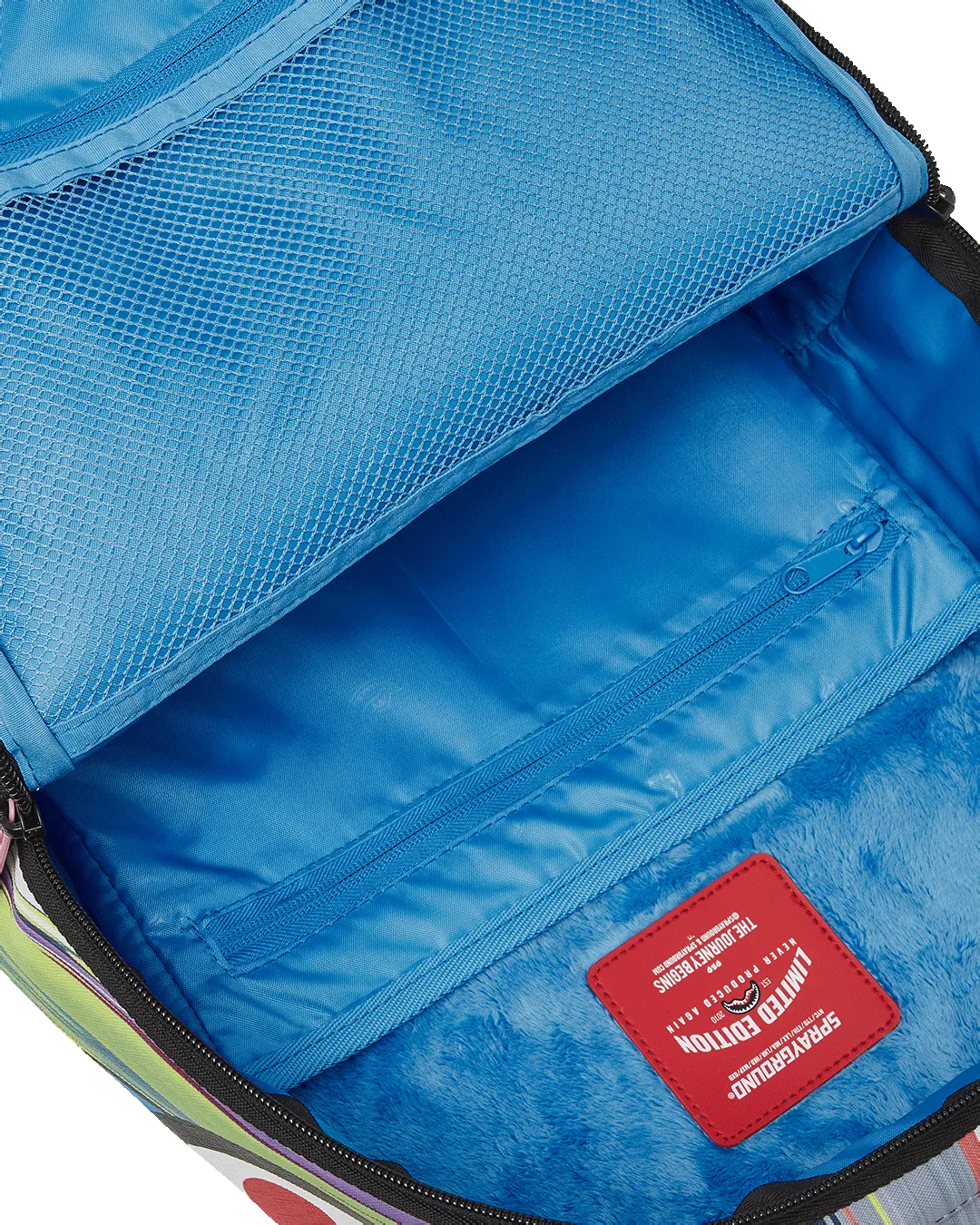 Dimensions: 18″ x 6″ x 11.5″ ? Front zipper pocket ? Side pockets ? Zippered Stash pocket ? Separate velour sunglass compartment ? Ergonomic mesh back padding ? Adjustable Straps for custom sizing ? Gold zippers with metal hardware ? Metal “Sprayground Authentic” badge ? Slide through back sleeve connects to carry-on luggage to free your hands