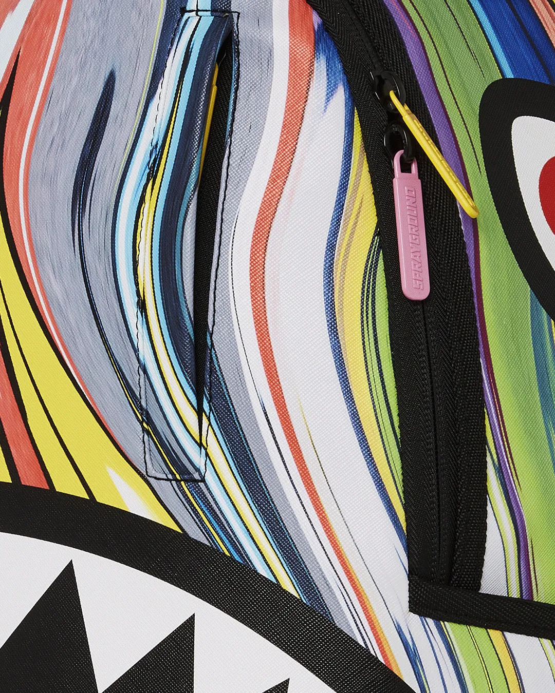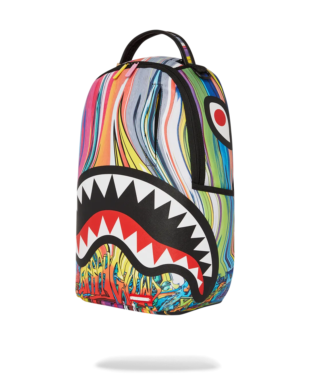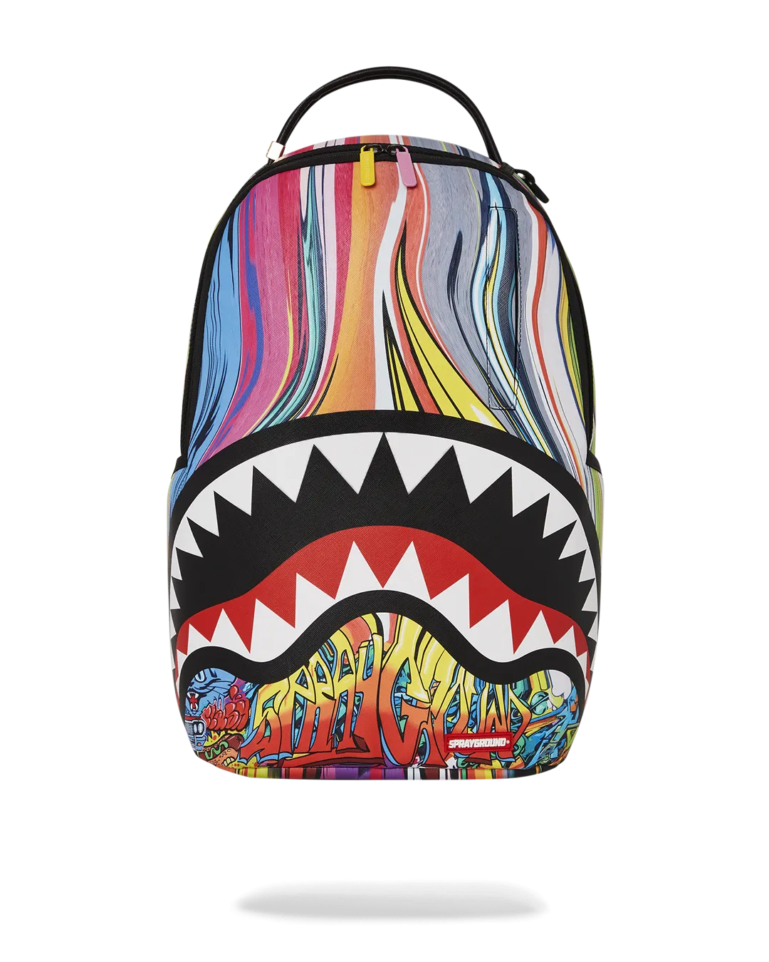 Dimensions: 18″ x 6″ x 11.5″ ? Front zipper pocket ? Side pockets ? Zippered Stash pocket ? Separate velour sunglass compartment ? Ergonomic mesh back padding ? Adjustable Straps for custom sizing ? Gold zippers with metal hardware ? Metal “Sprayground Authentic” badge ? Slide through back sleeve connects to carry-on luggage to free your hands