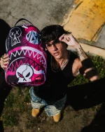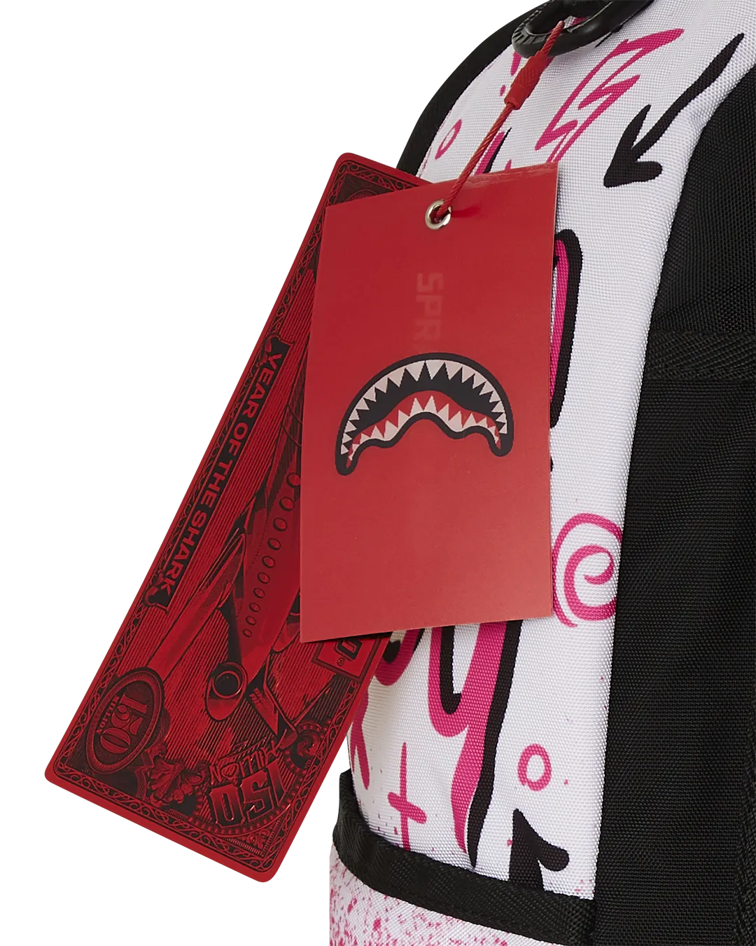 Dimensions: 18″ x 6″ x 11.5″ ? Front zipper pocket ? Side pockets ? Zippered Stash pocket ? Separate velour sunglass compartment ? Ergonomic mesh back padding ? Adjustable Straps for custom sizing ? Gold zippers with metal hardware ? Metal “Sprayground Authentic” badge ? Slide through back sleeve connects to carry-on luggage to free your hands