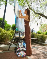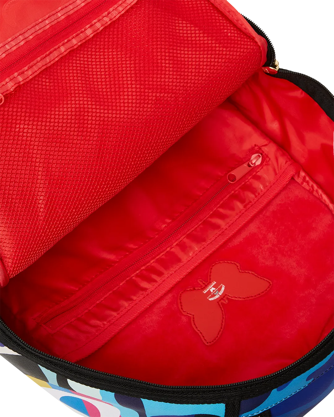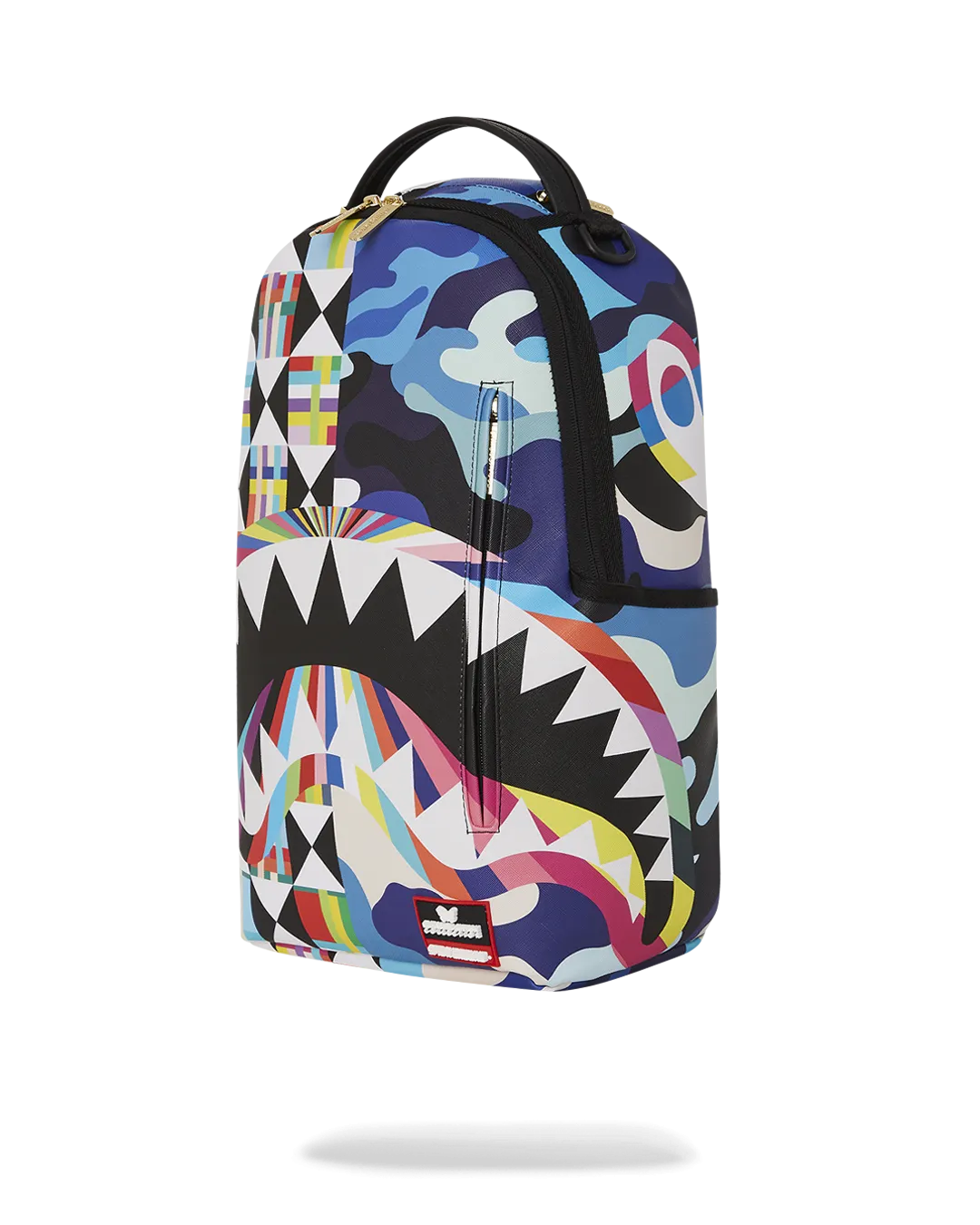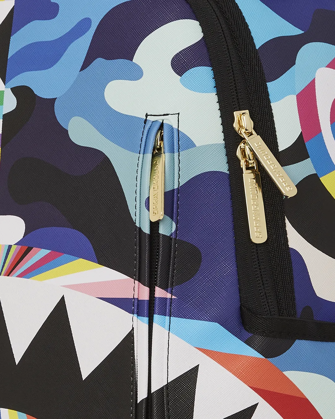 Dimensions: 18″ x 6″ x 11.5″ ? Front zipper pocket ? Side pockets ? Zippered Stash pocket ? Separate velour sunglass compartment ? Ergonomic mesh back padding ? Adjustable Straps for custom sizing ? Gold zippers with metal hardware ? Metal “Sprayground Authentic” badge ? Slide through back sleeve connects to carry-on luggage to free your hands
