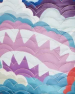100% Polyester. ?Sublimated in a soft rainbow print and quilted in a cloud design.