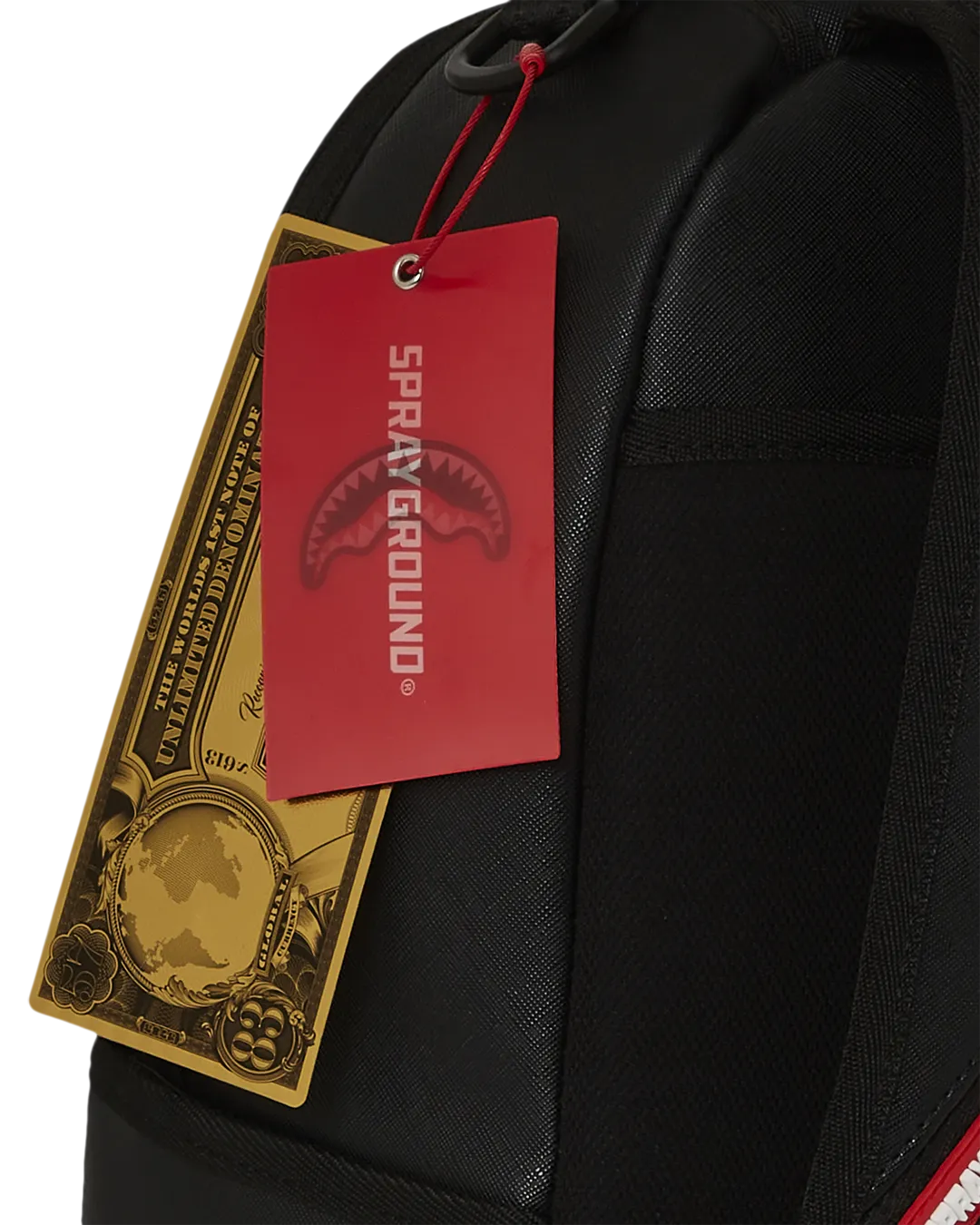 Dimensions: 18″ x 6″ x 11.5″ ? Front zipper pocket ? Side pockets ? Zippered Stash pocket ? Separate velour sunglass compartment ? Ergonomic mesh back padding ? Adjustable Straps for custom sizing ? Gold zippers with metal hardware ? Metal “Sprayground Authentic” badge ? Slide through back sleeve connects to carry-on luggage to free your hands