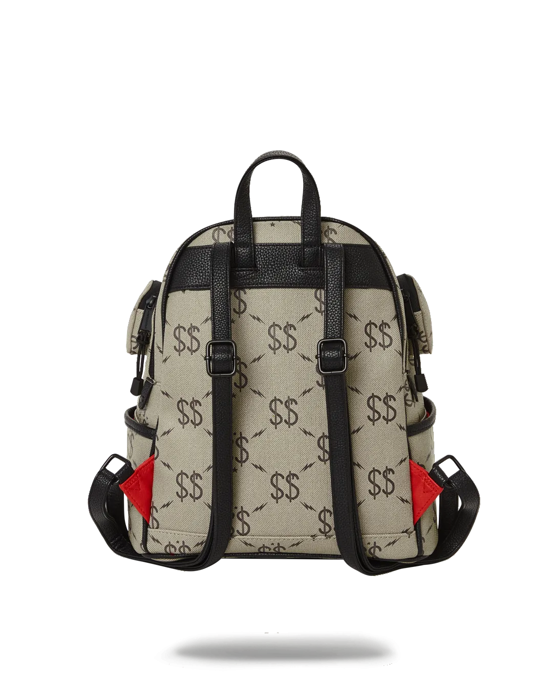 Dimensions: 10″ x 5″ x 11.5″ ? Two large main zippered compartments ? Side pockets ? Zippered Stash pocket ? Adjustable straps for custom sizing ? Gold zippers with metal hardware