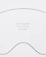 Cut and sew sharkmouth shape with embossed silver foil lettering.